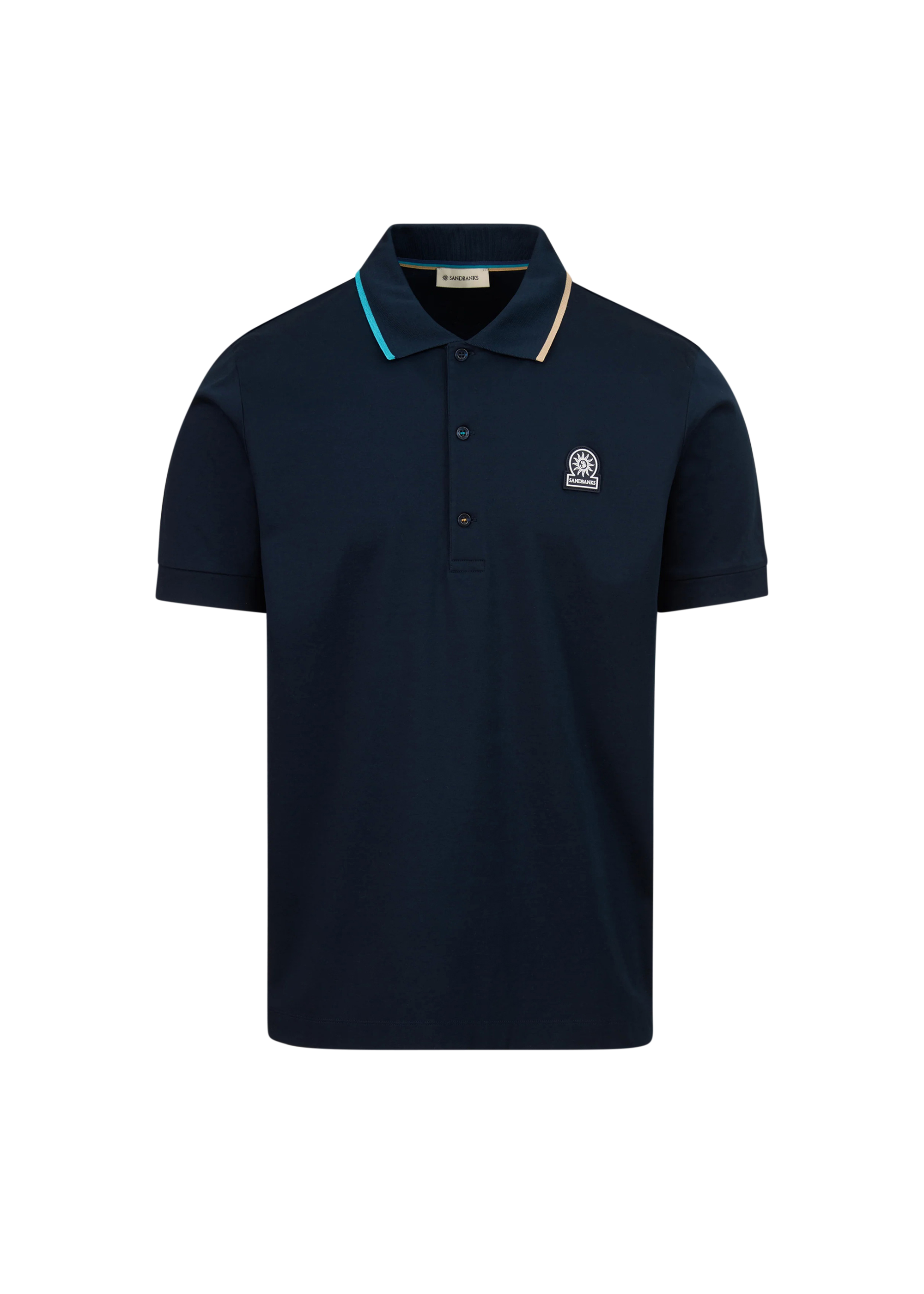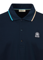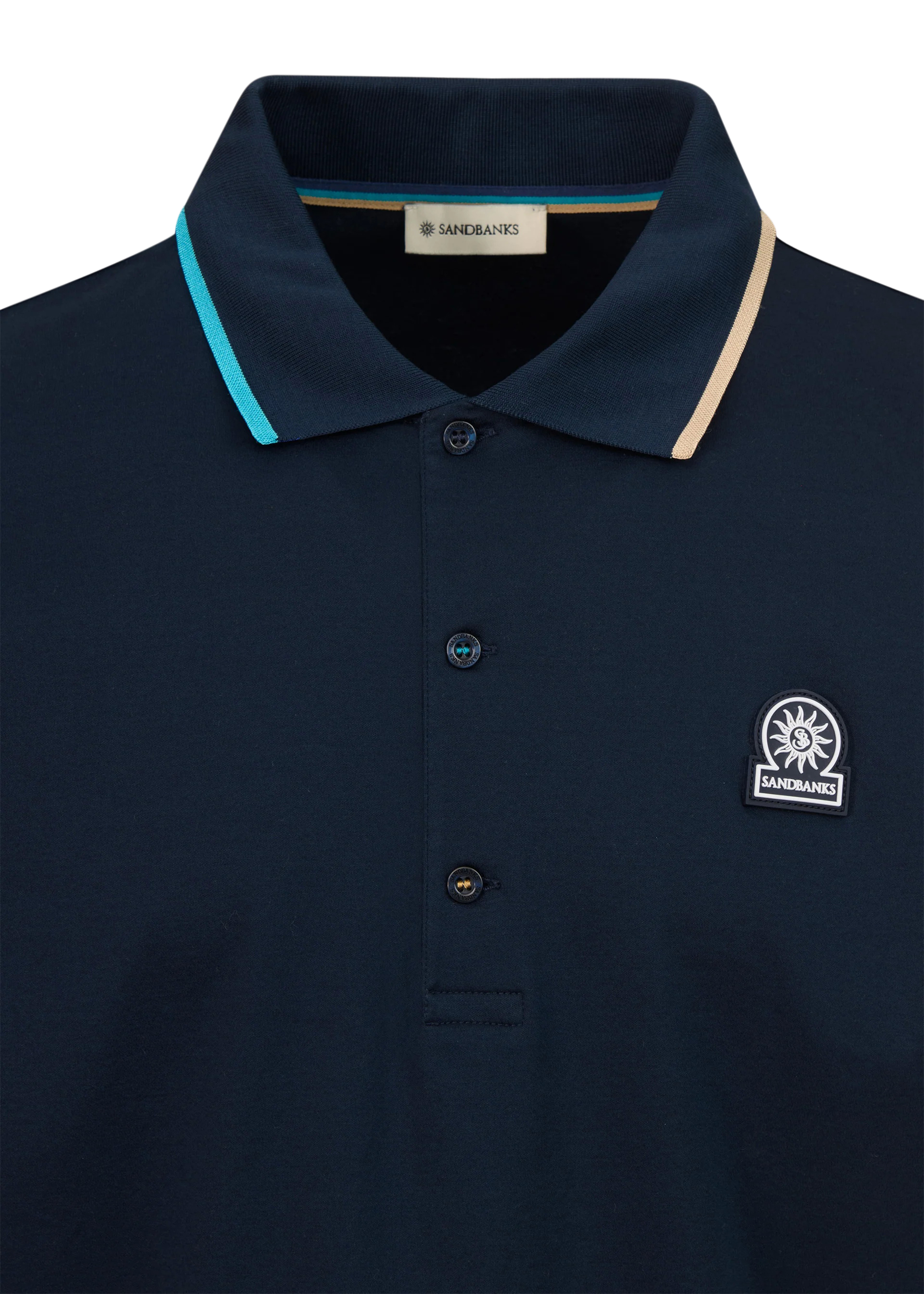 Sandbanks Tri-Colour Tipped 3-Button Polo ShirtNavy
