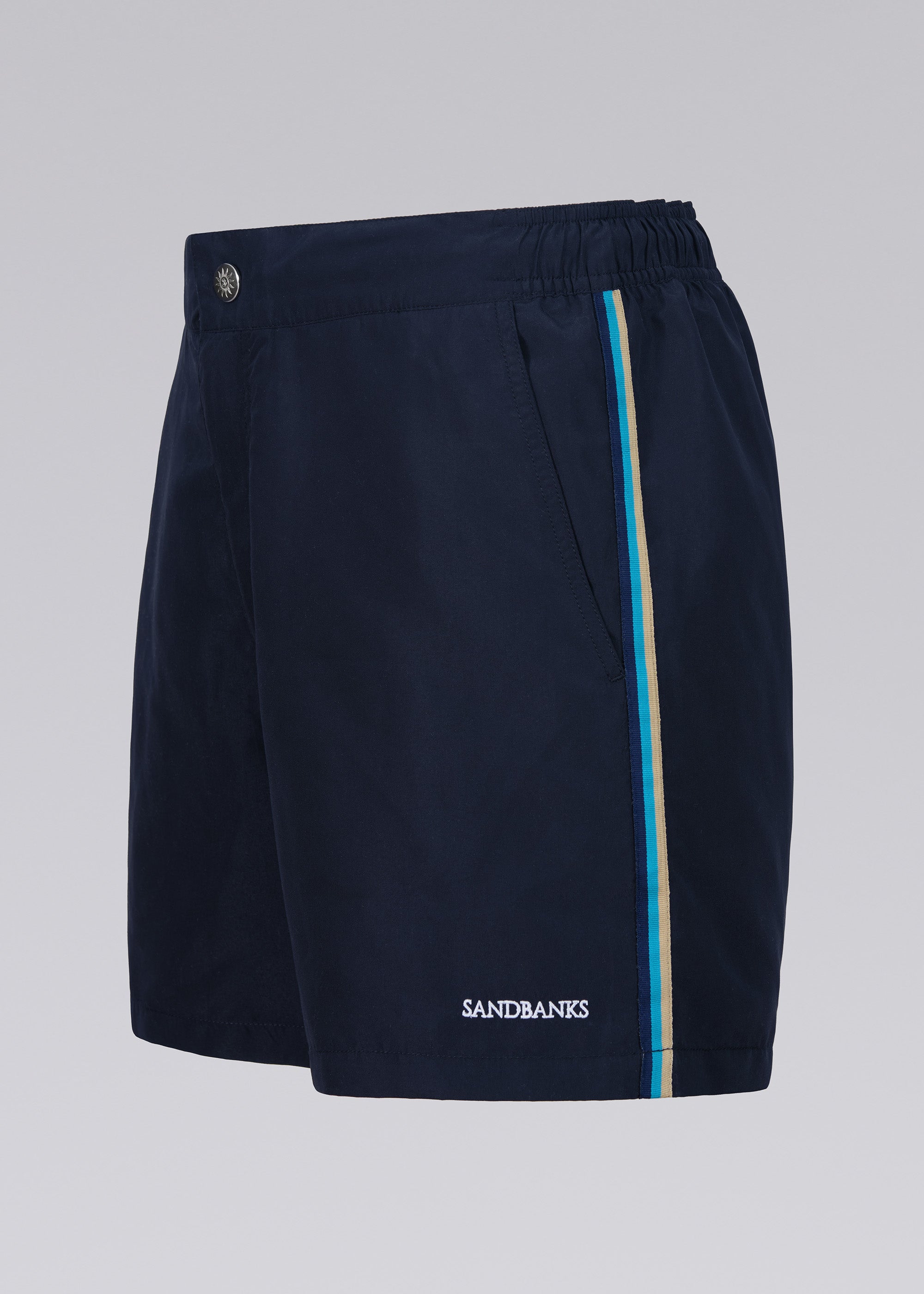 Sandbanks men's beachwear is made from regenerated nylons and plastics, using New life fiber and ECONYL® yarns - made in Portugal.