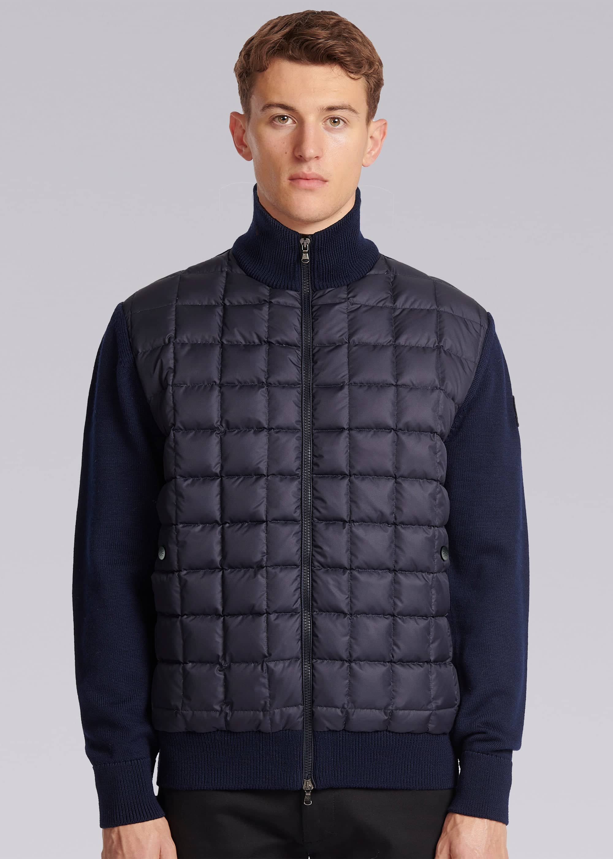 Sandbanks Grid Hybrid Funnel Neck Knit JacketNavy