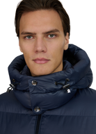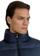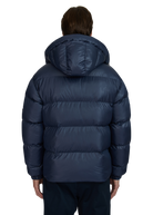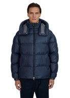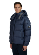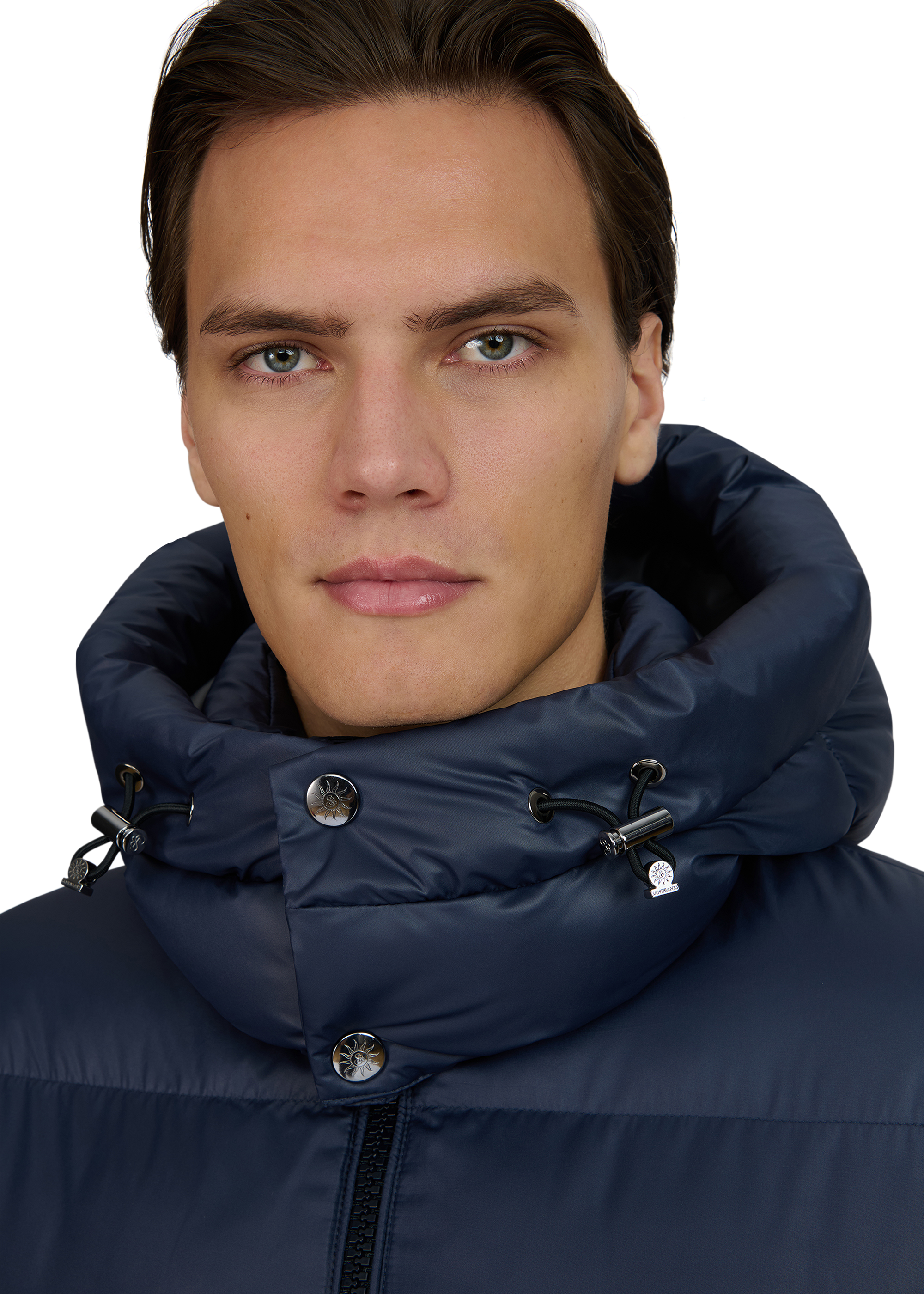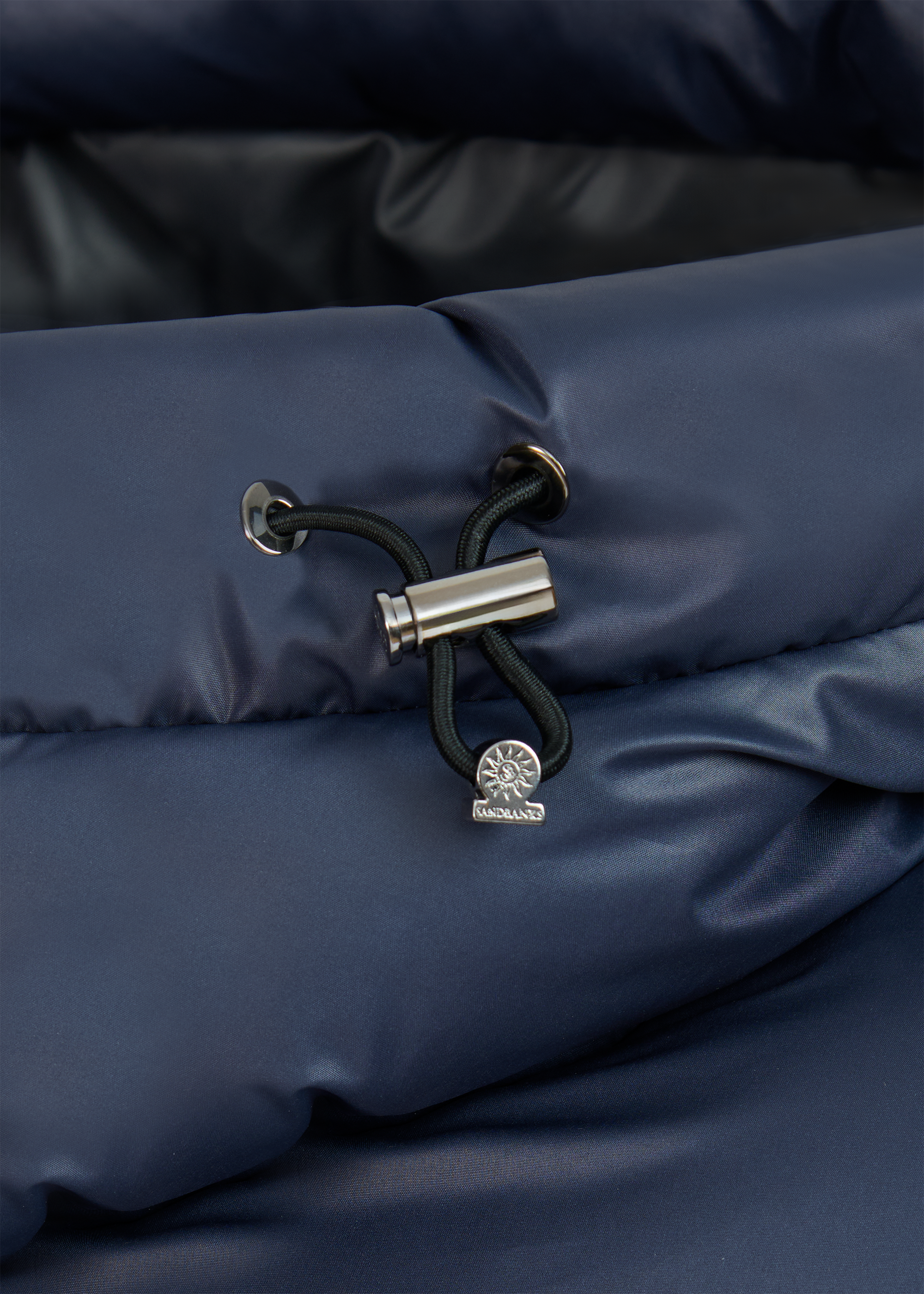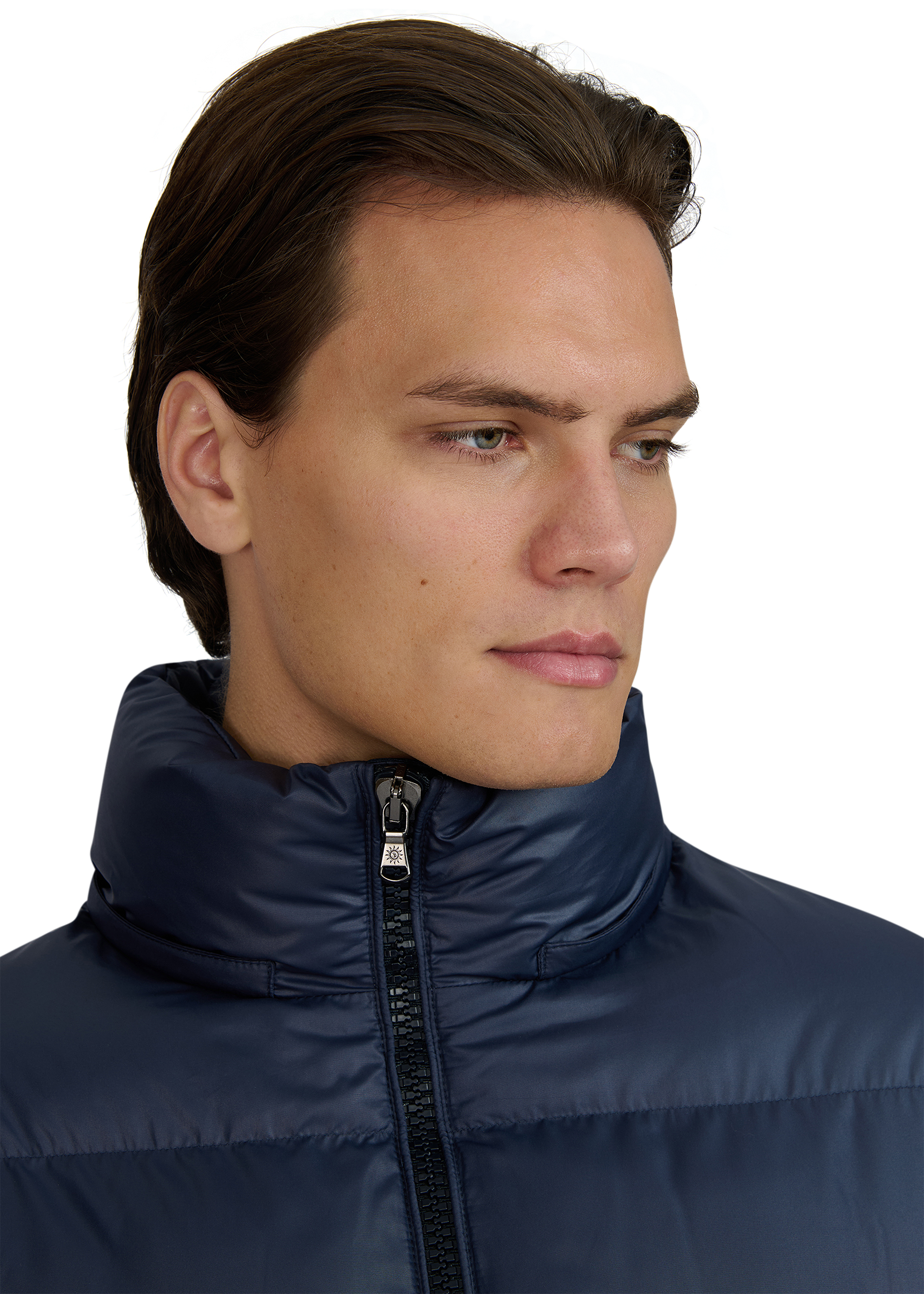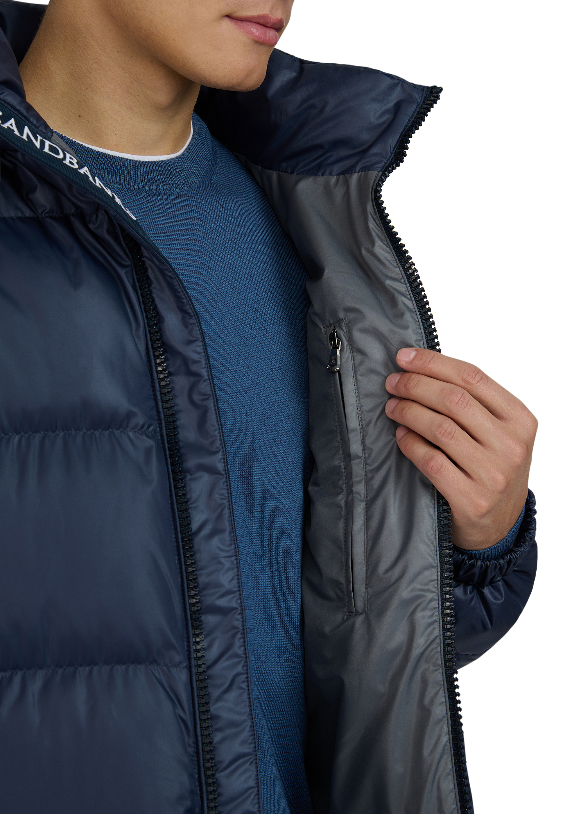 The Horizon Puffer Jacket blends craftsmanship with sustainable design, insulated with Ecodown for advanced thermal performance. Its navy shell delivers an understated finish, detailed with a Lampo two-way gunmetal zip, detachable hood with popper fastenings, and a Sandbanks embroidered sleeve badge.