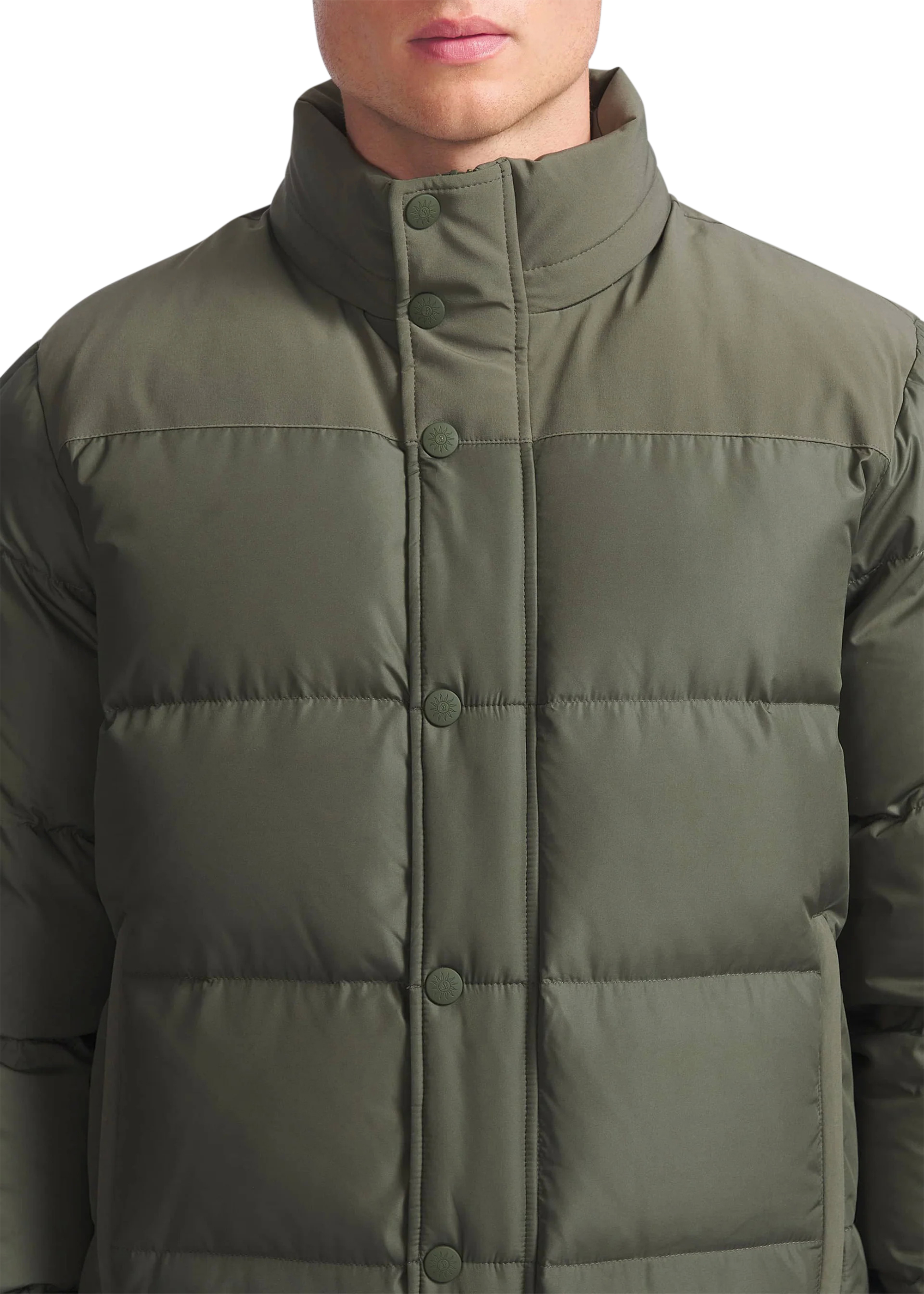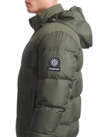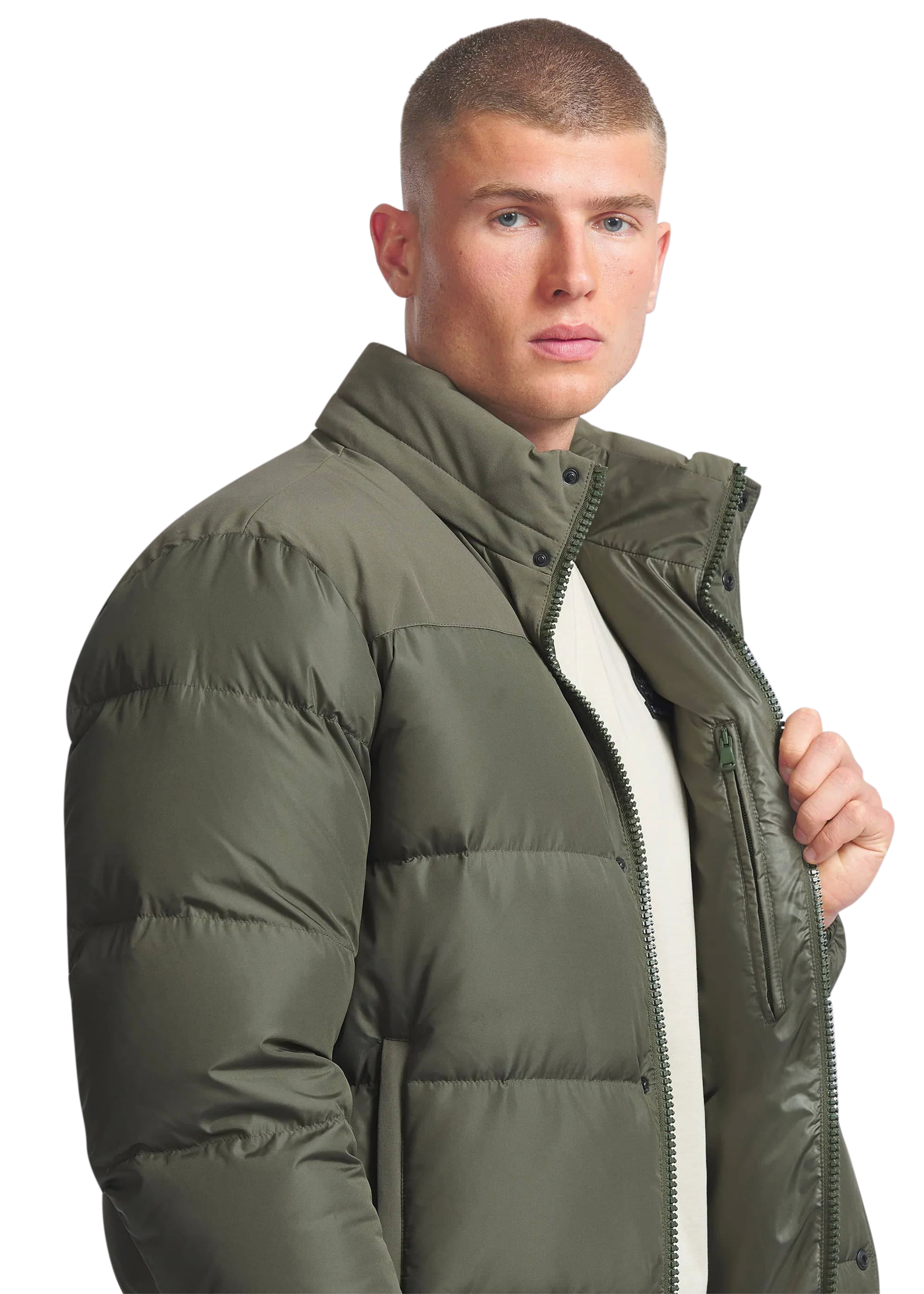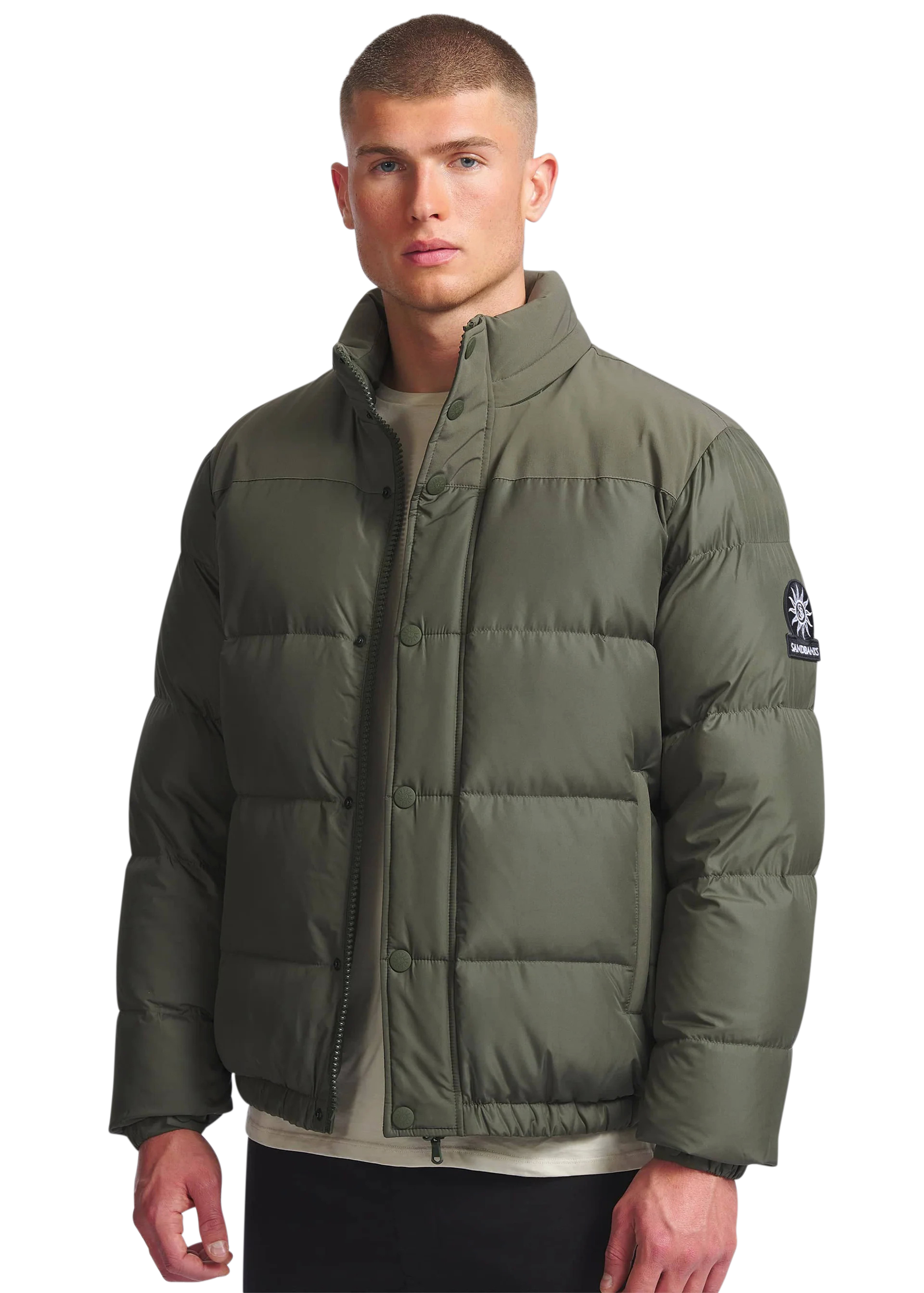 Online exclusive - the Sandbanks Peninsula puffer jacket in khaki. This light weight Sandbanks puffer jacket features a felt and embroidered logo badge, tonal rubberised buttons, Lampo 2-way zip with rubberised pullers, contrast shoulder/collar, Sandbanks rear logo details and zip out hood.
