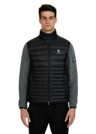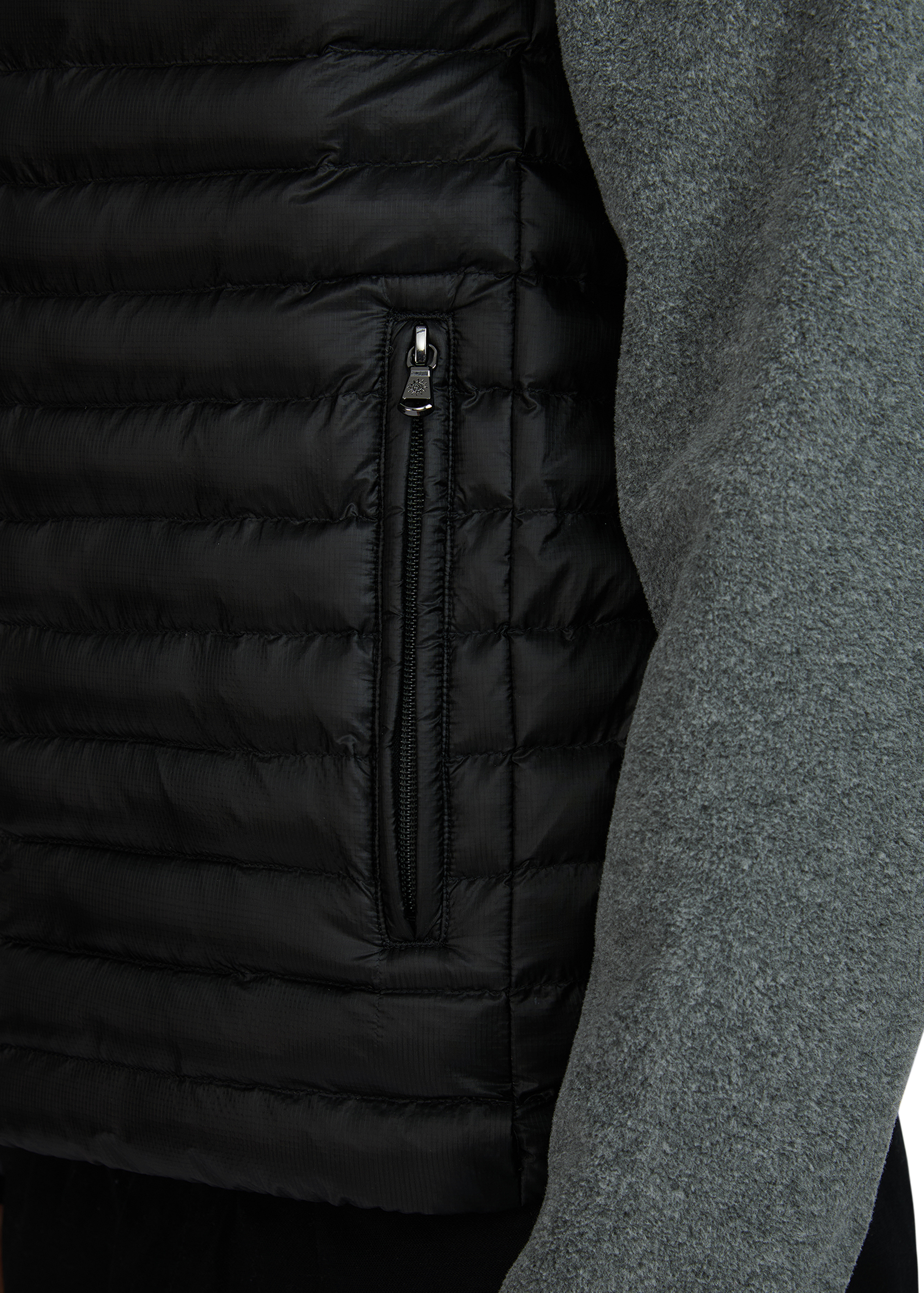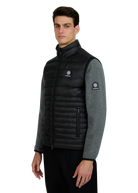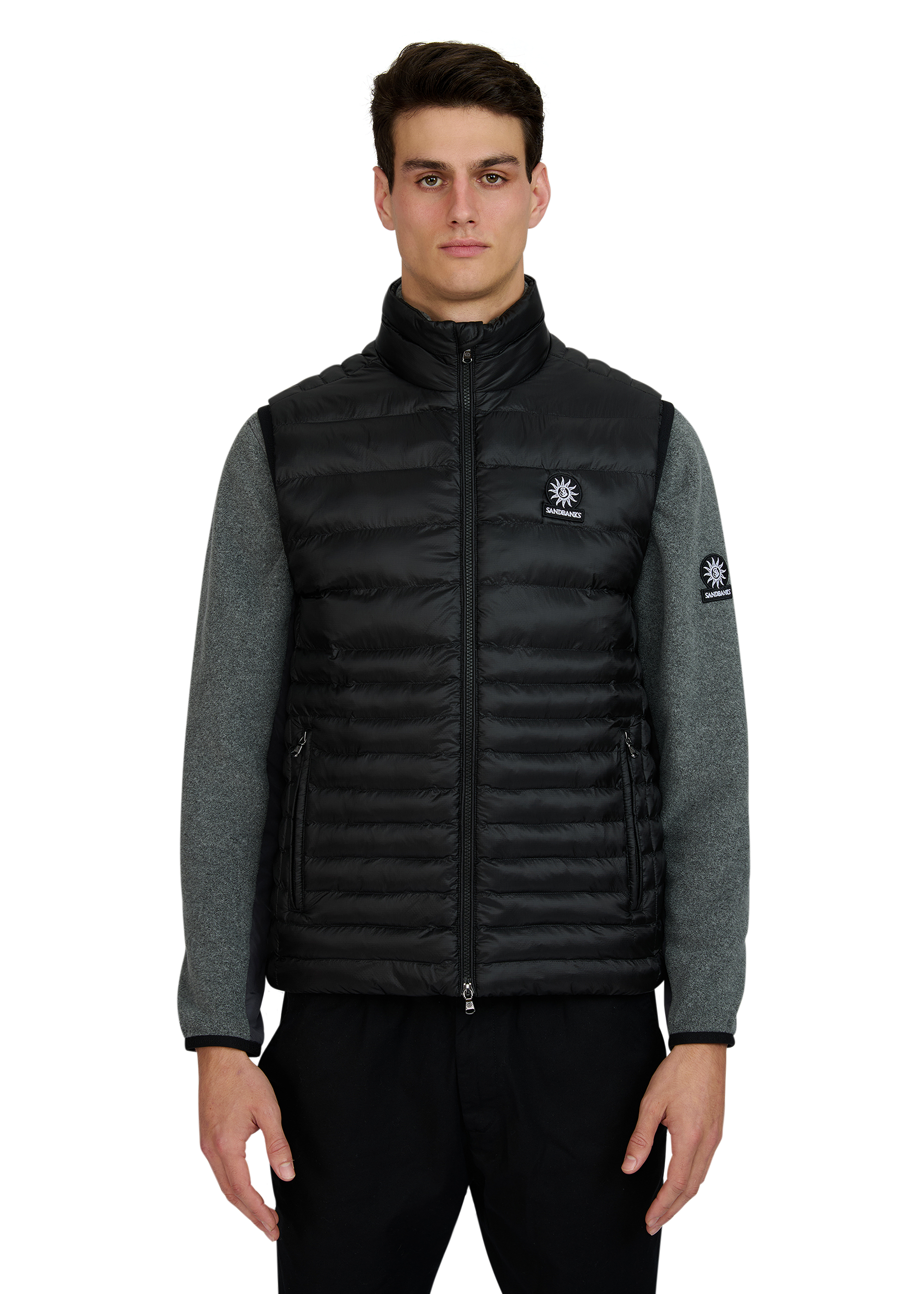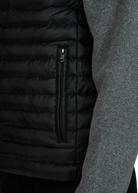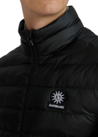 Sandbanks Ripstop Micro Puffer Gilet in black. A transitional staple - this lightweight gilet is crafted from premium, water-resistant ripstop fabric made with recycled materials. Features include internal and external zip pockets with YKK engraved zips and embroidered chest badge.