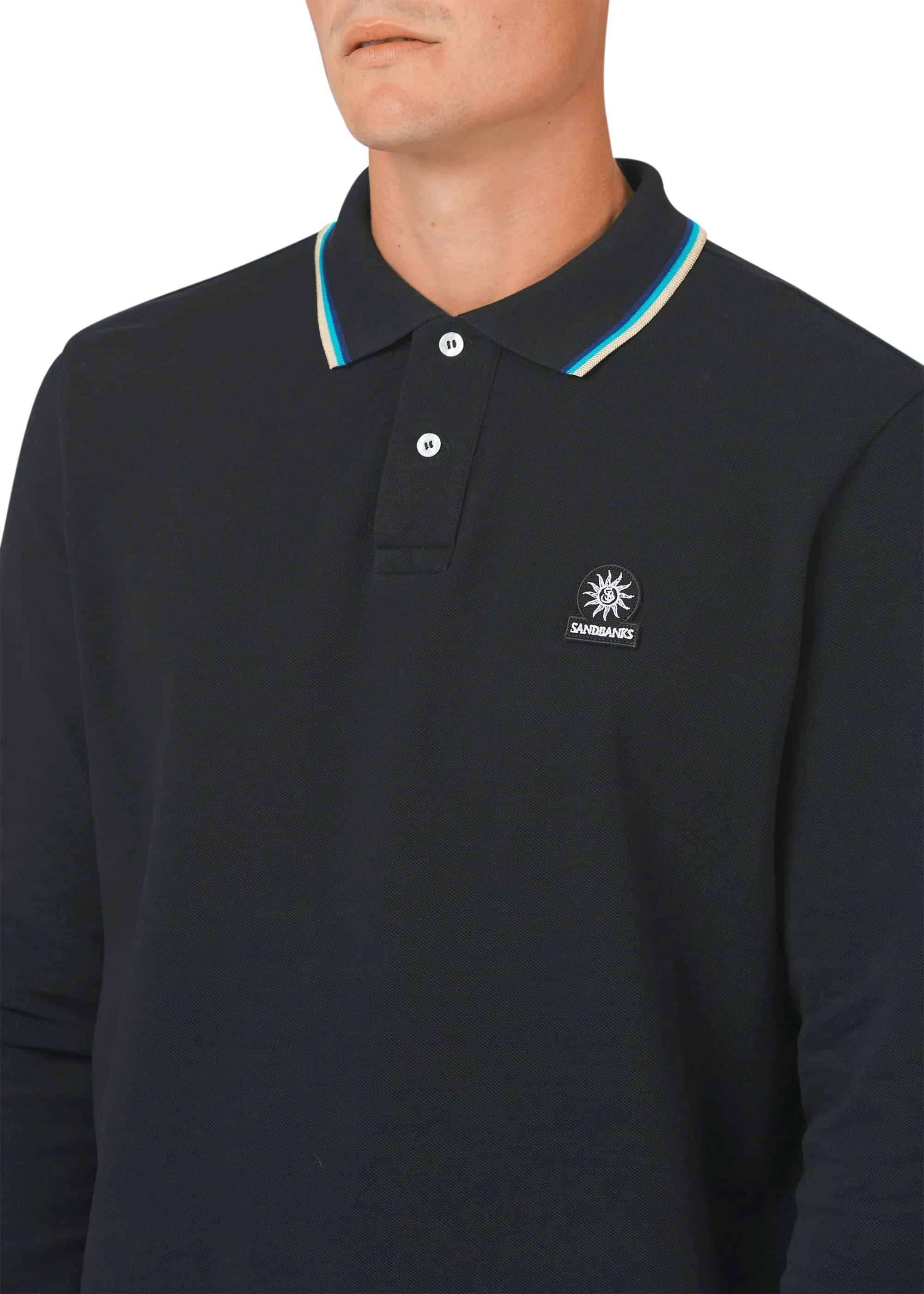 Sandbanks Badge Logo Long Sleeve Polo ShirtBlack