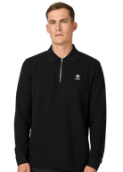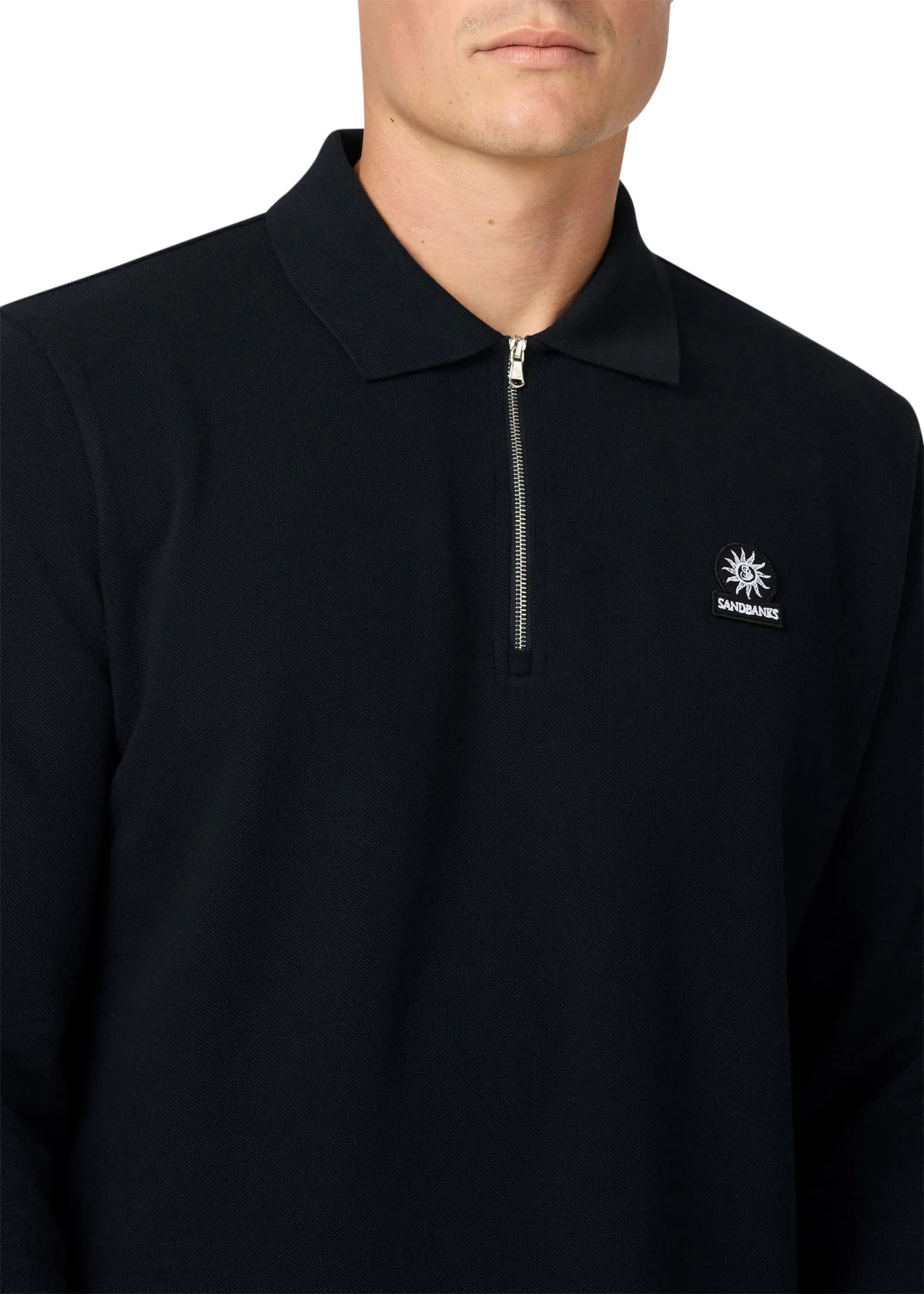 Sandbanks Badge Logo Long Sleeve Zip Polo ShirtBlack