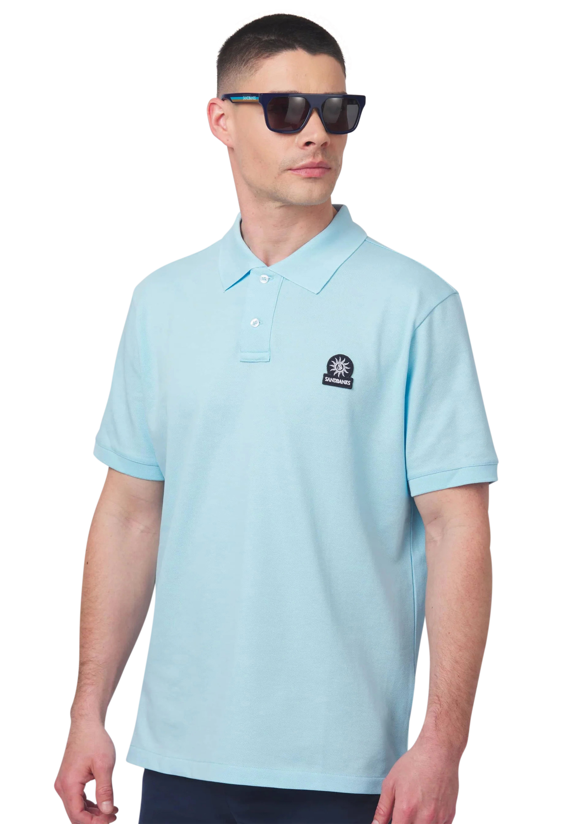 Sandbanks Badge Logo Pique Polo ShirtCrystal Blue