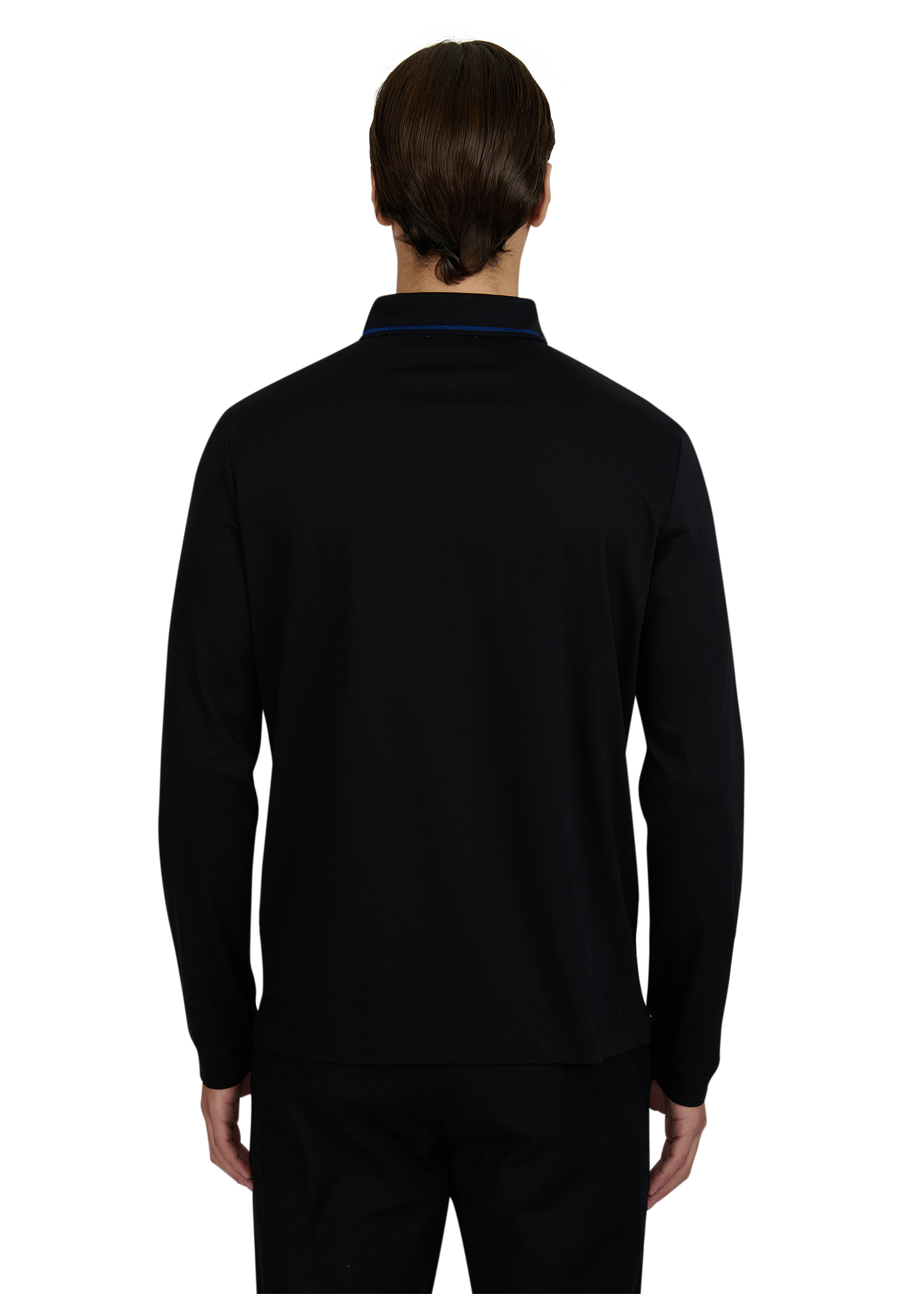 Sandbanks Tipped Collar Long Sleeve PoloBlack