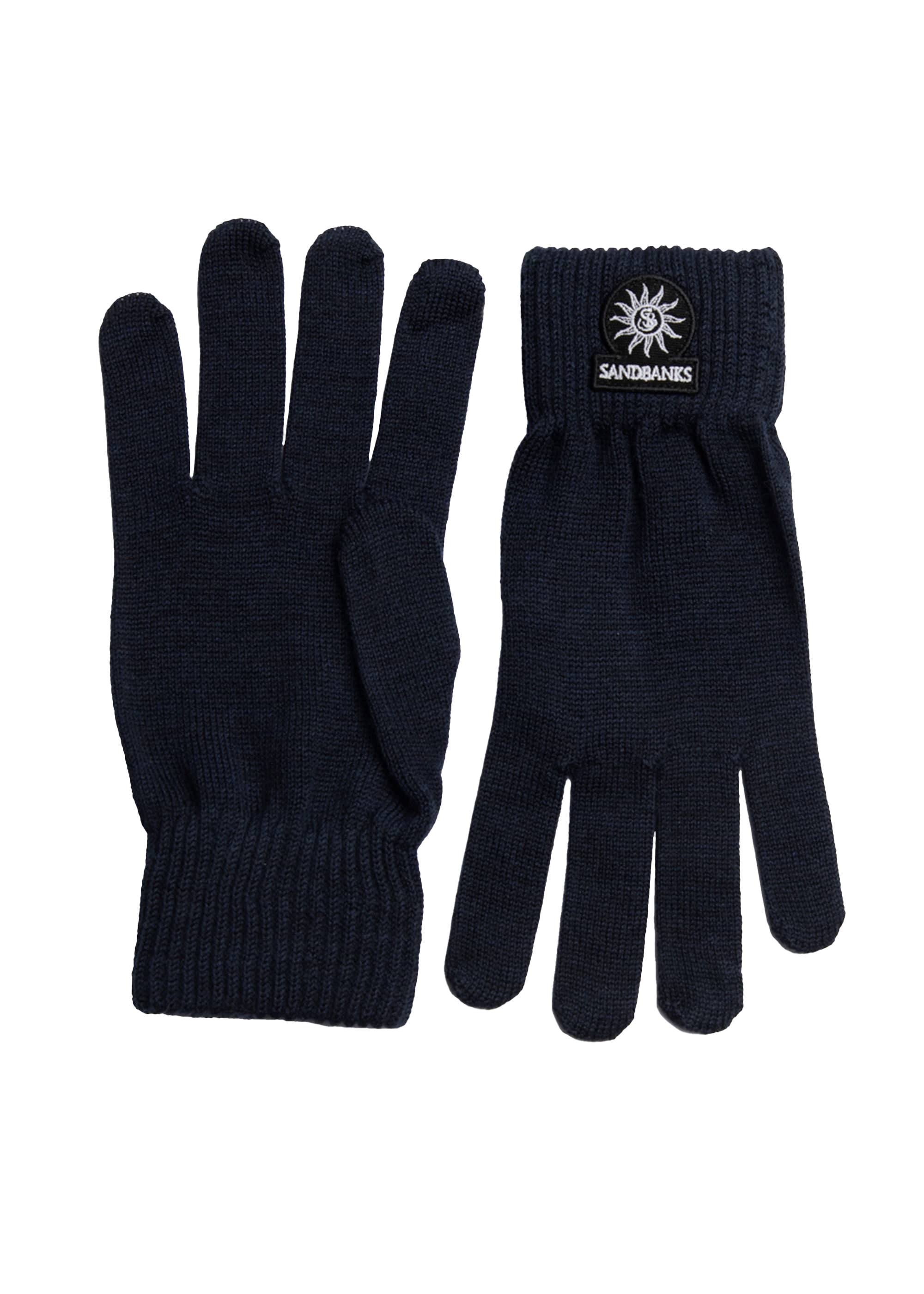 Sandbanks knitted badge logo gloves in navy, made from merino wool mix.