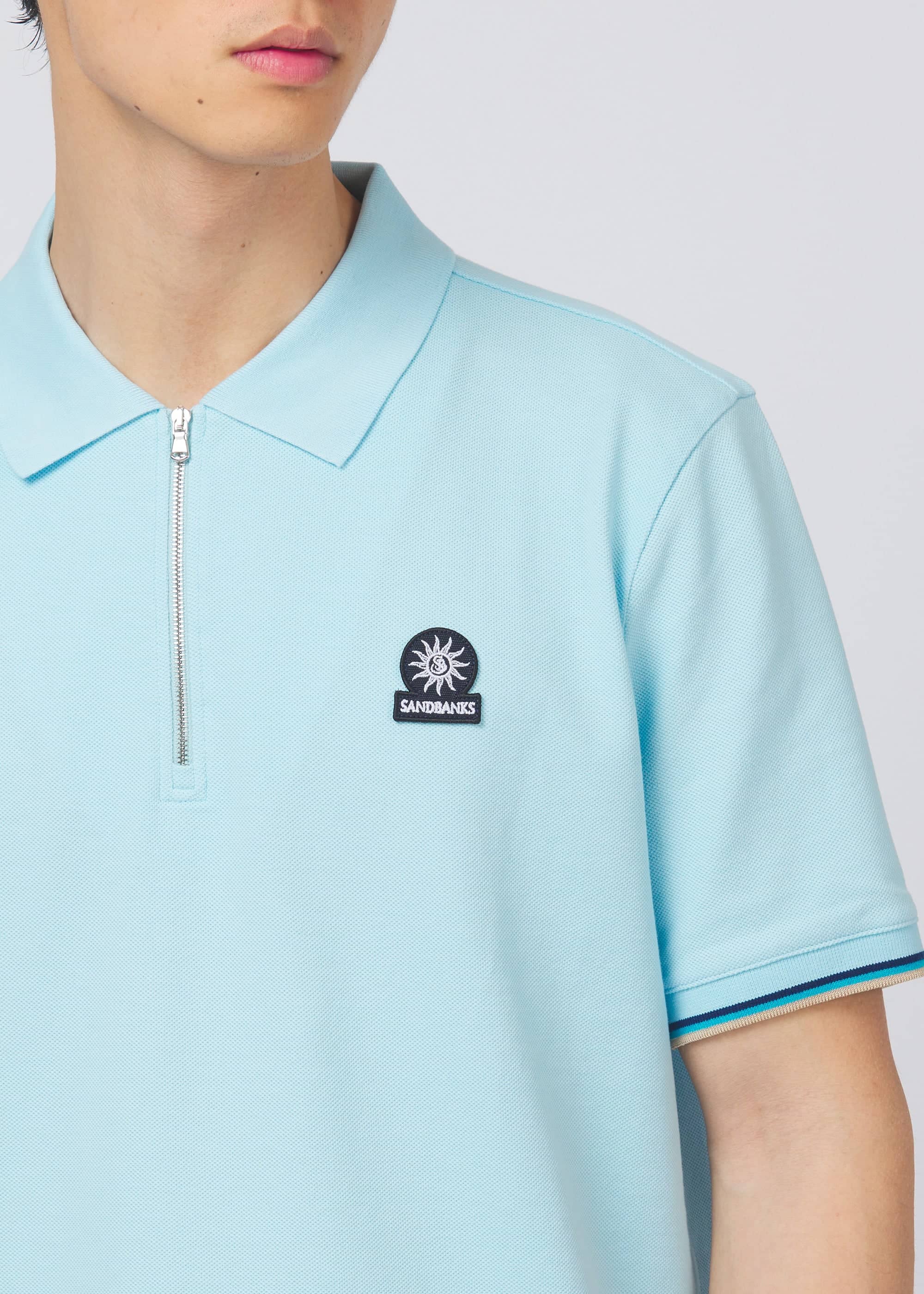 Sandbanks Badge Logo Zip Polo ShirtCrystal Blue