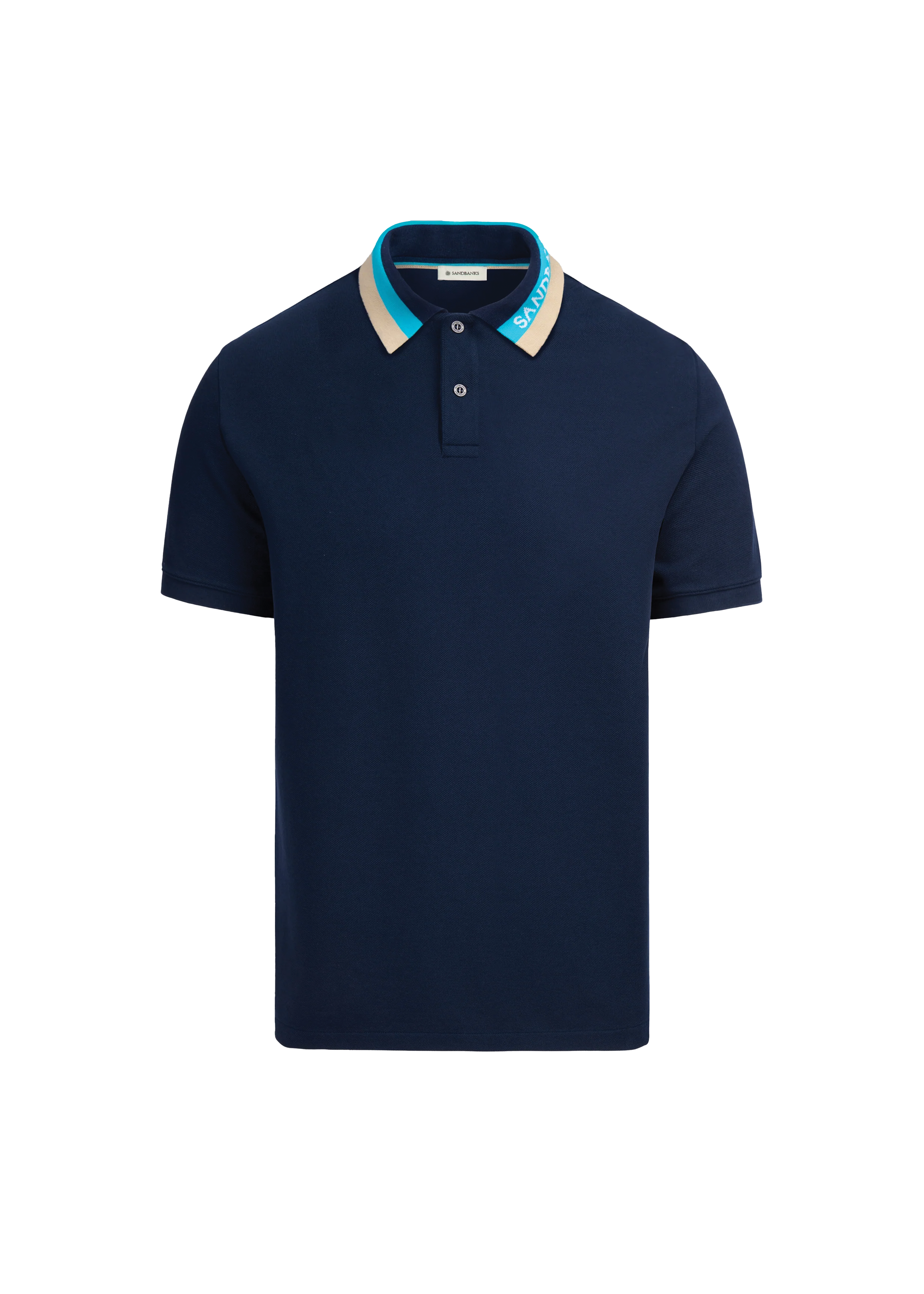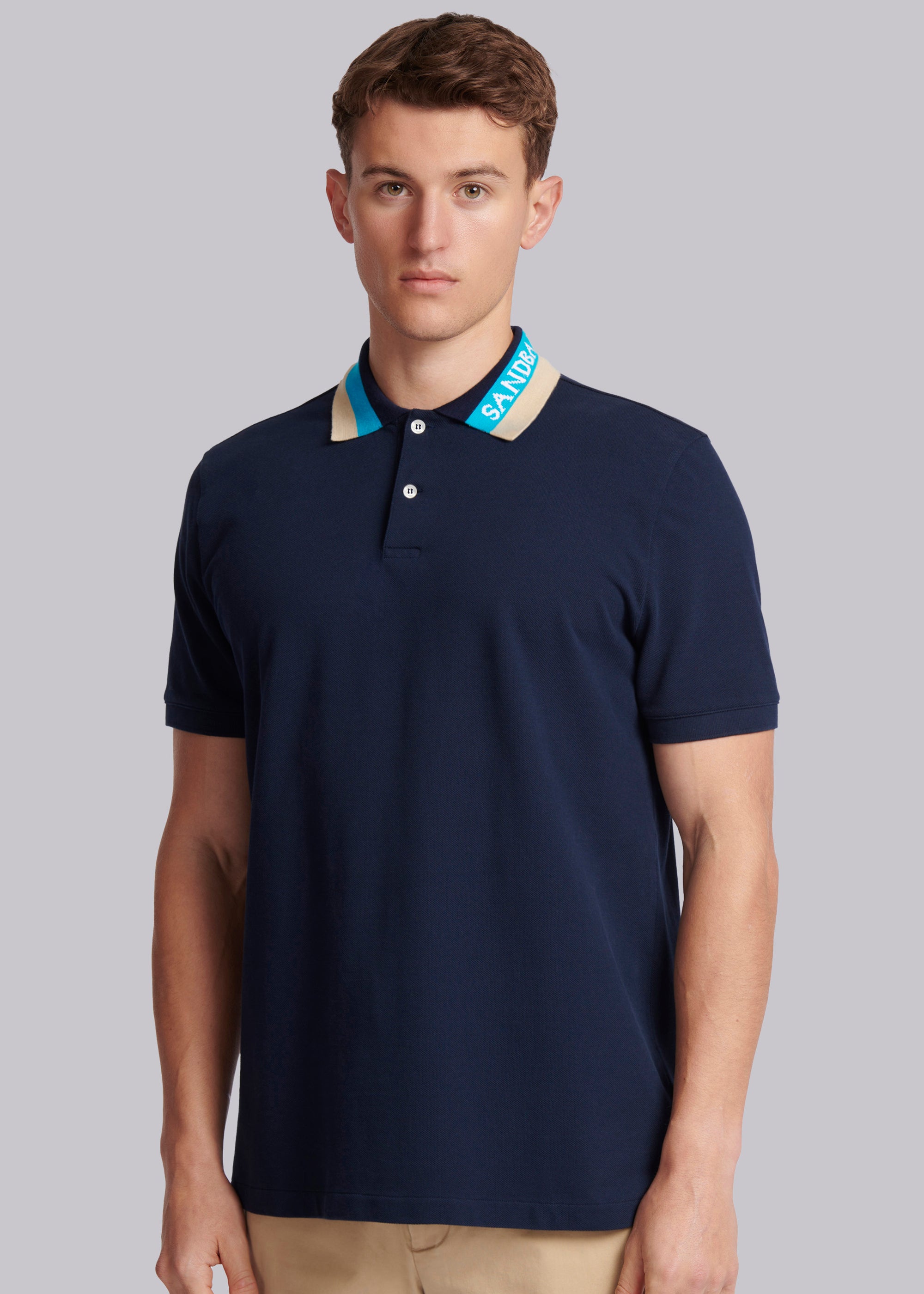 Sandbanks Tri-Colour Collar Polo ShirtNavy