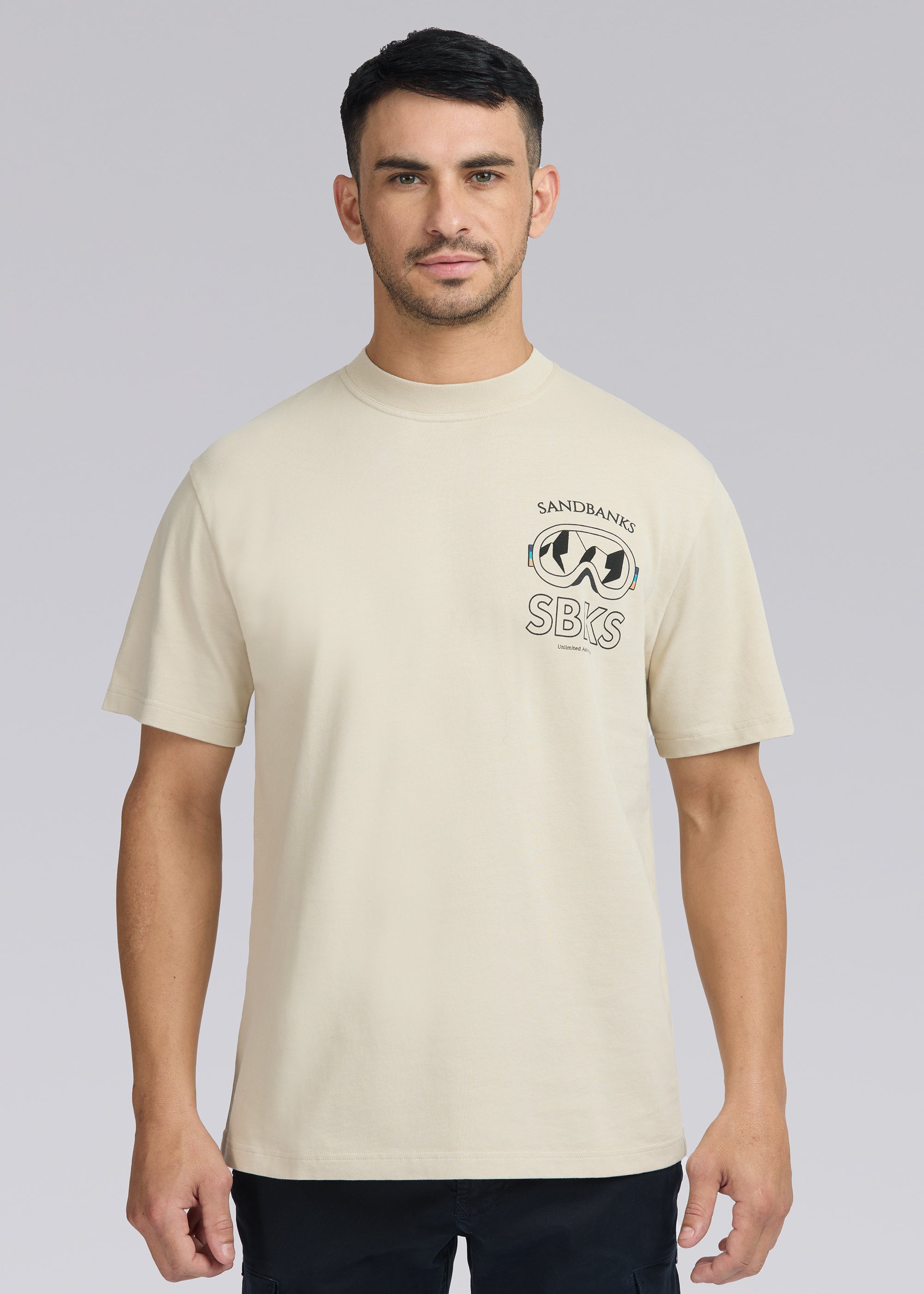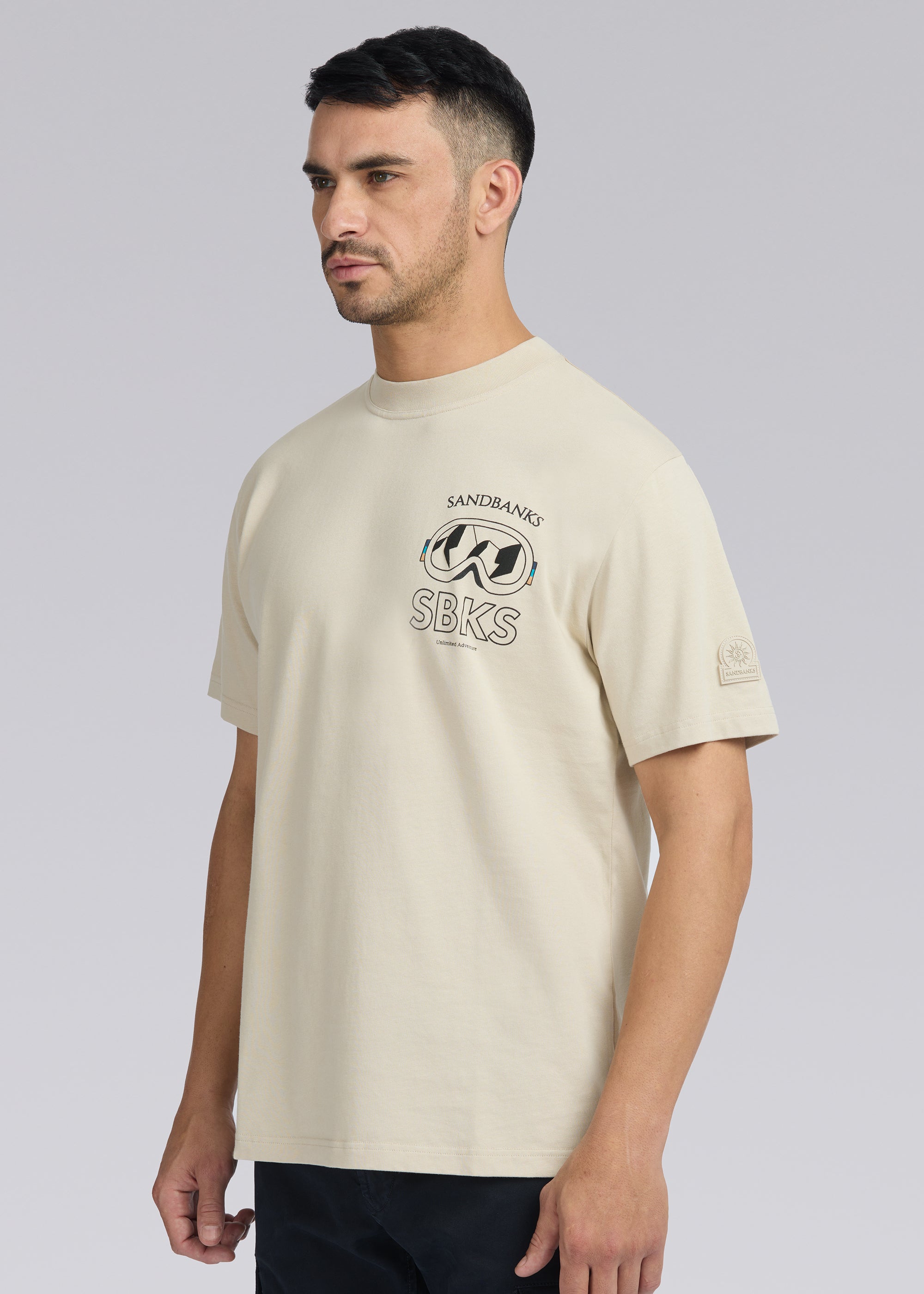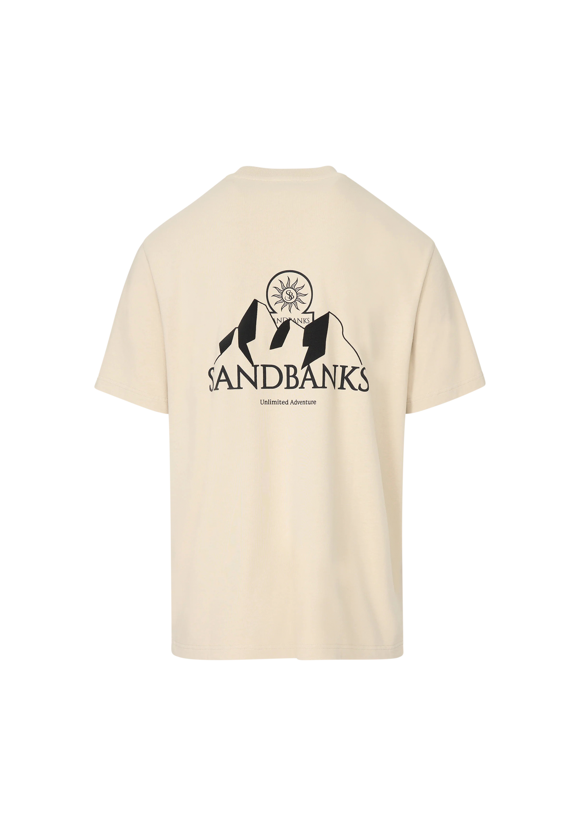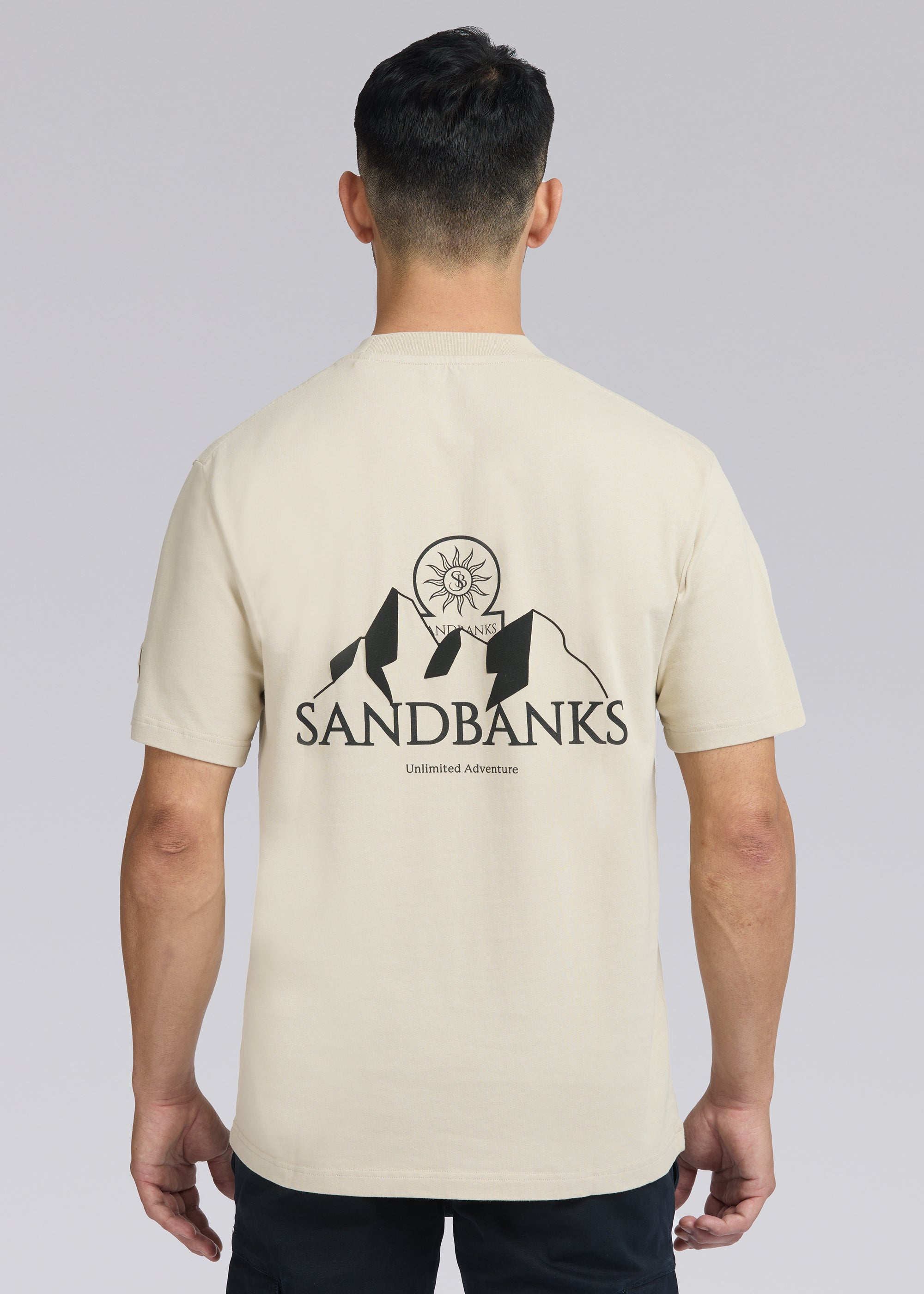 Our Sandbanks Unlimited Adventure t-shirt in stone is made from 100% BCI Cotton with tonal sleeve rubber badge logo and statement black unlimited adventure print. This edit captures the essence of outdoor exploration and the thrill of adventure, bringing the spirit of the mountains and the freedom of the open air into everyday wear.
