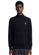 Sandbanks men's fine gauge knitted roll neck in black, made from 100% organic cotton for a soft and luxurious feel. This sweatshirt features a Sandbanks logo badge embroidery on the chest, roll neck and tri-colour neck binding.