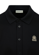 Sandbanks men's full button Interlock polo shirt in black, made from 100% mercerised interlock bci cotton for a soft and luxurious handle. This polo shirt features a rubber Sandbanks badge logo on the chest, tri-colour neck binding and black opaque Sandbanks branded buttons.