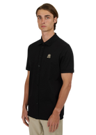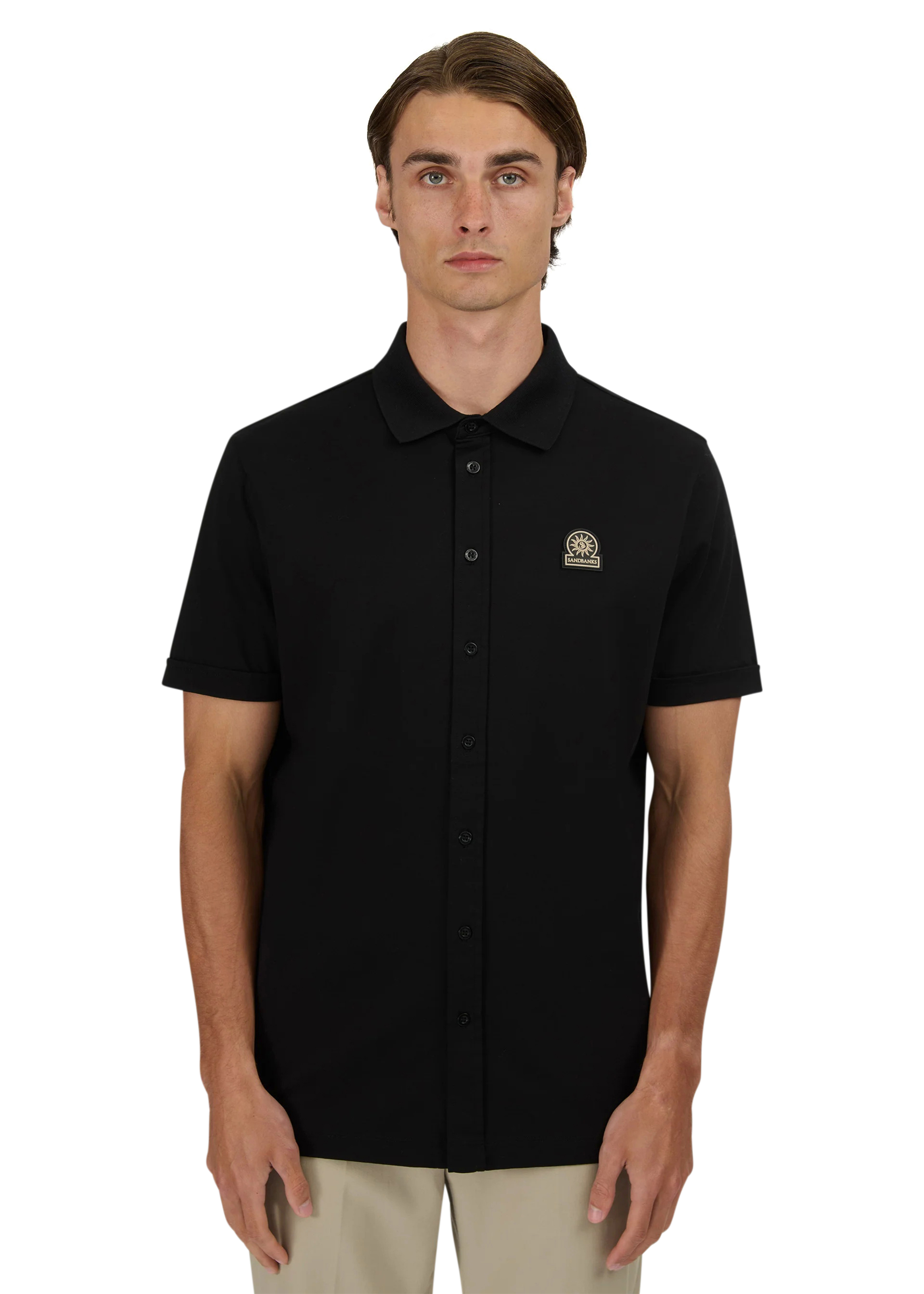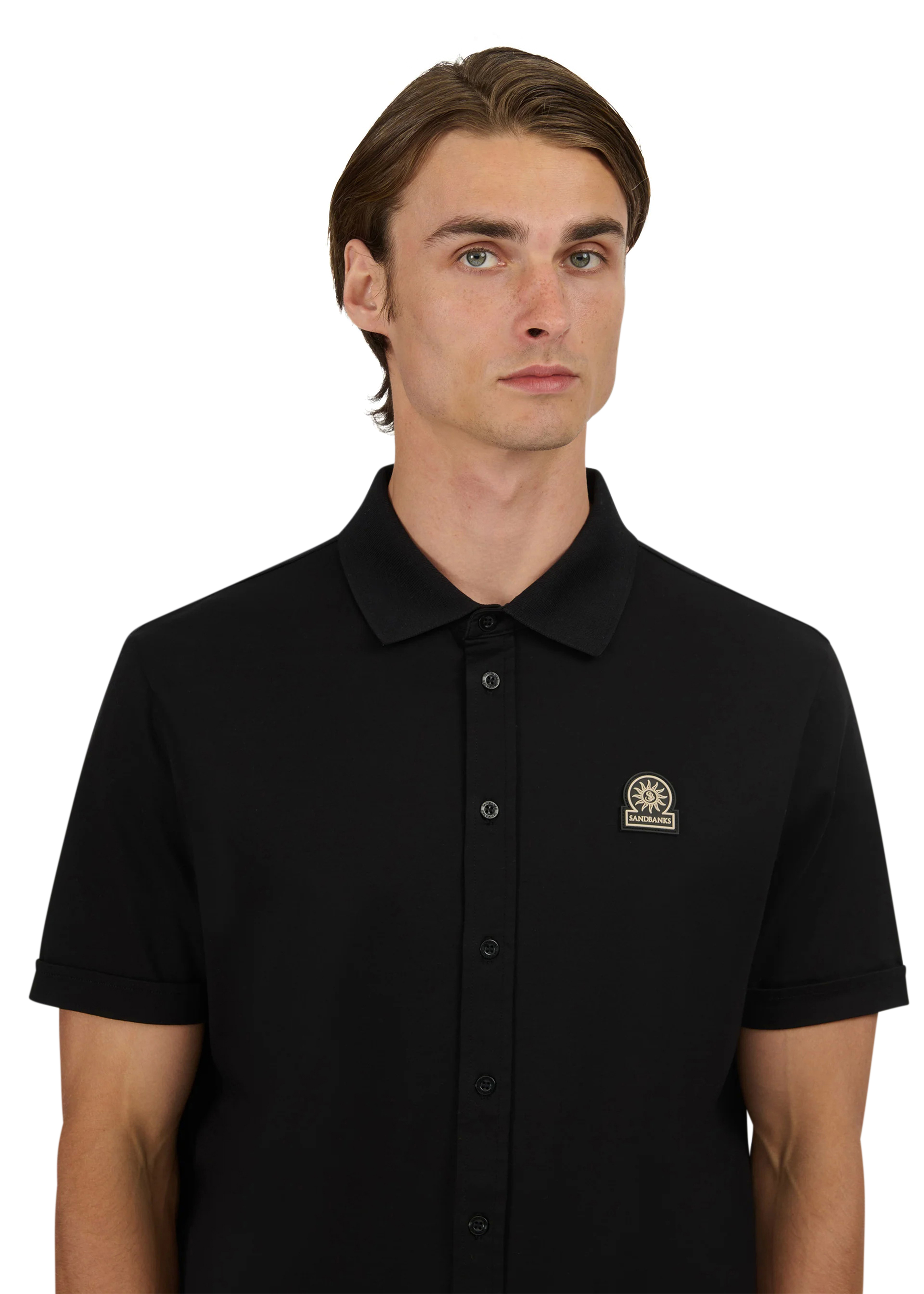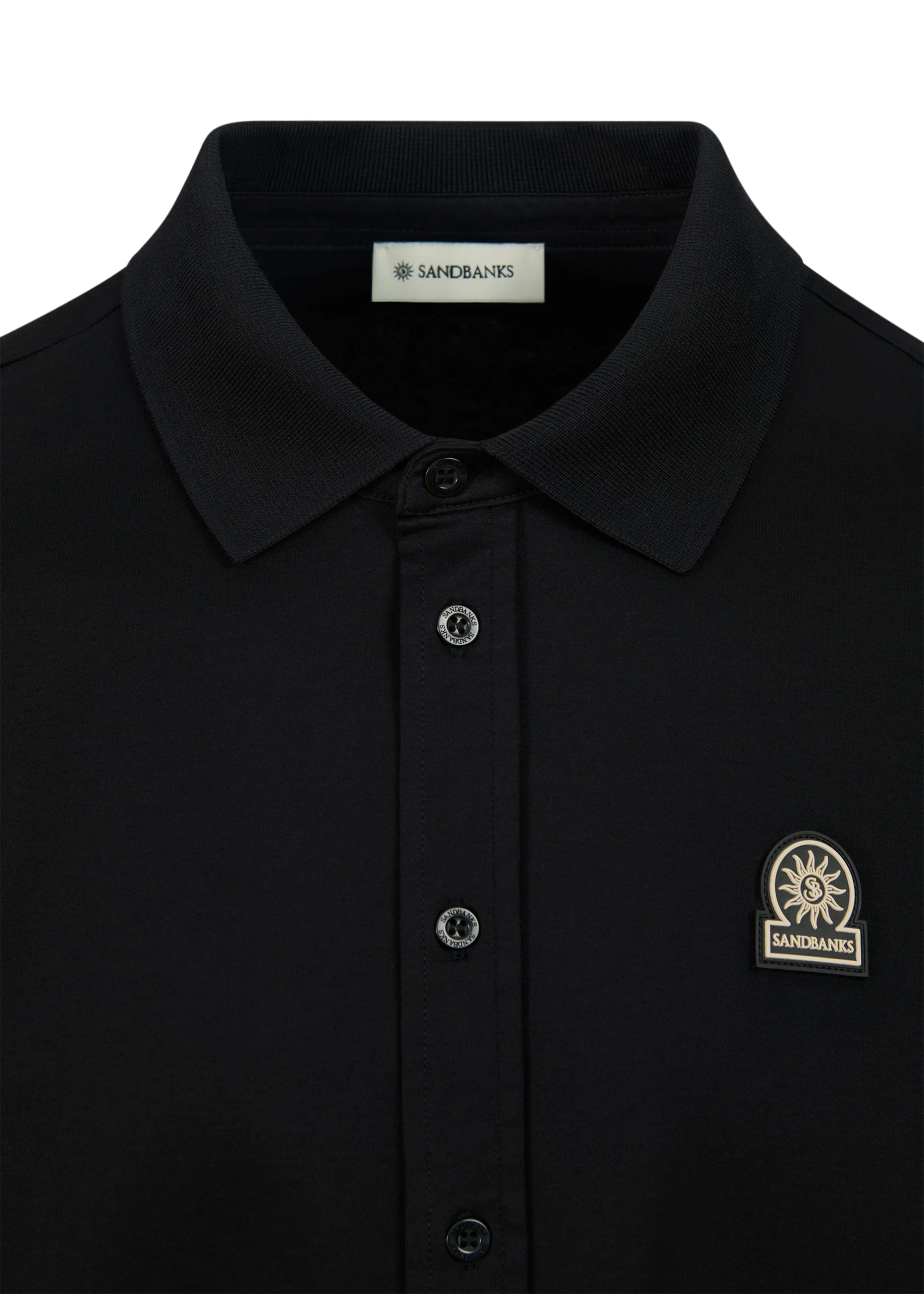 Sandbanks Full Button Interlock Polo ShirtBlack