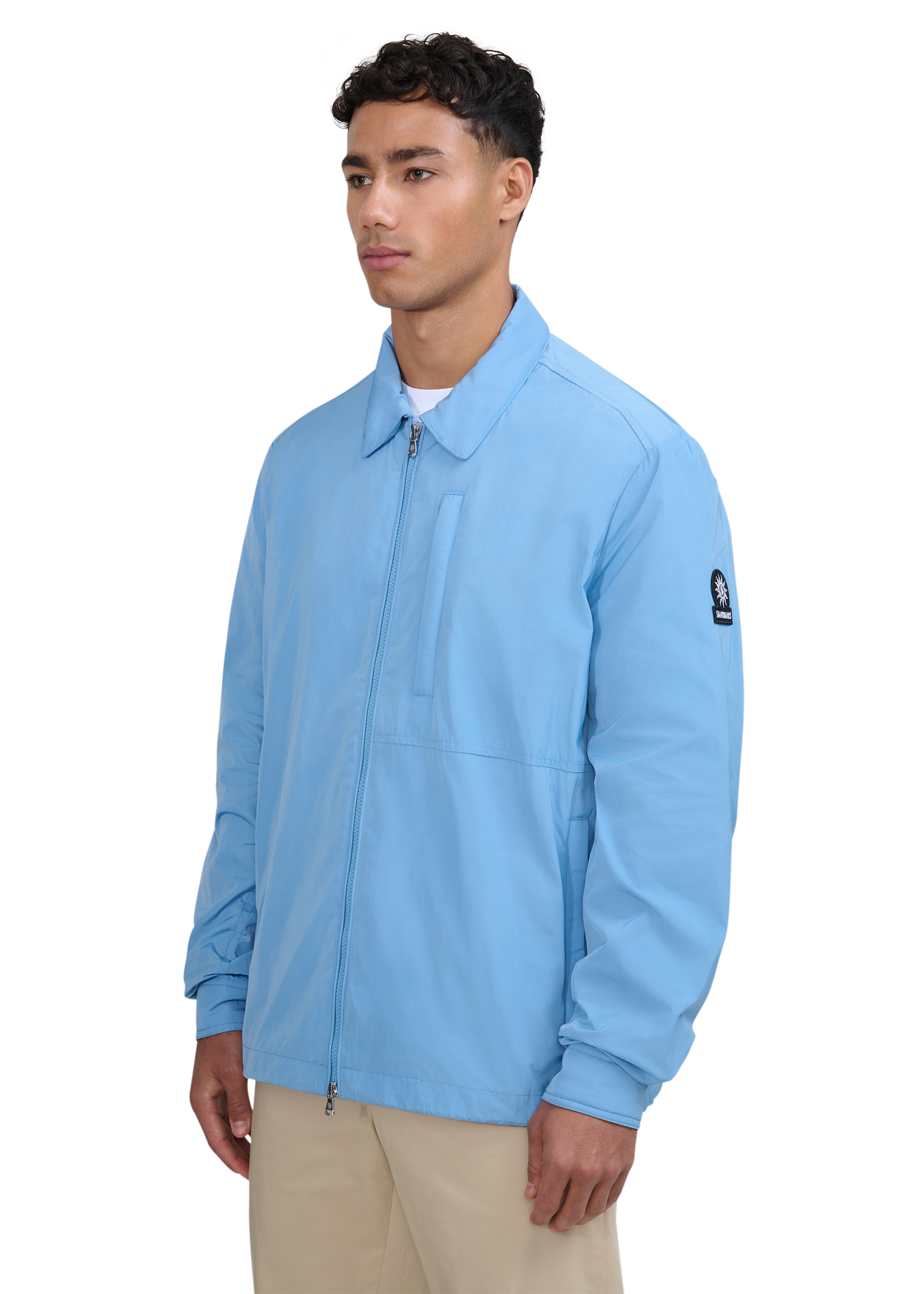 Designed with a utility-first mindset and clean, considered detailing, this technical overshirt is defined by function and wearability. Defined by a clean silhouette with a straight-cut profile, it transitions easily from overshirt to lightweight jacket. A structured collar with hidden magnetic closures keeps it securely in place, while a protective storm flap and YKK two-way zip support durability and ease of movement. Lightly padded zip pockets deliver secure, practical storage without added bulk. Finished with a signature Sandbanks sleeve badge, placket and branded logo pullers.
