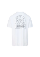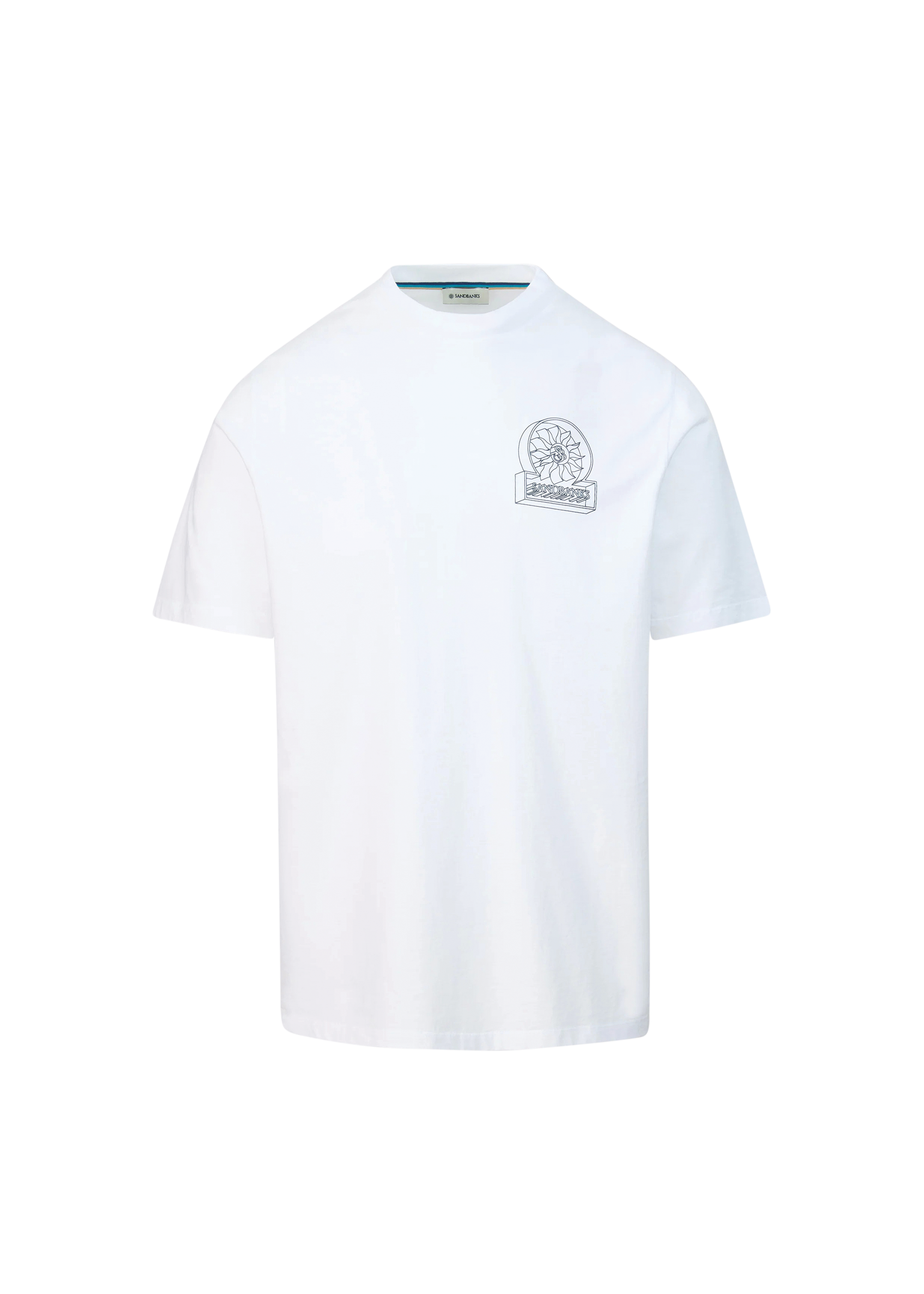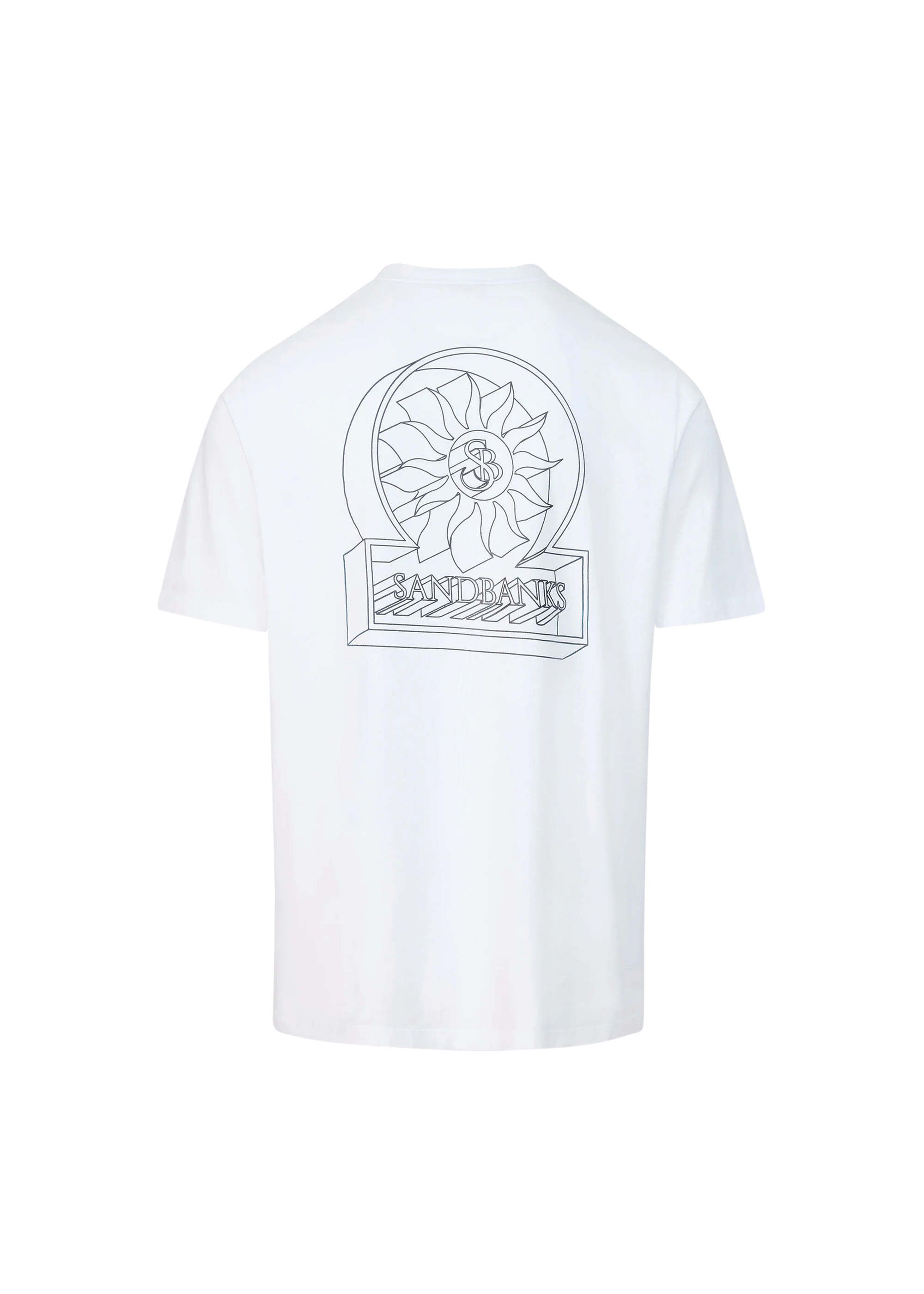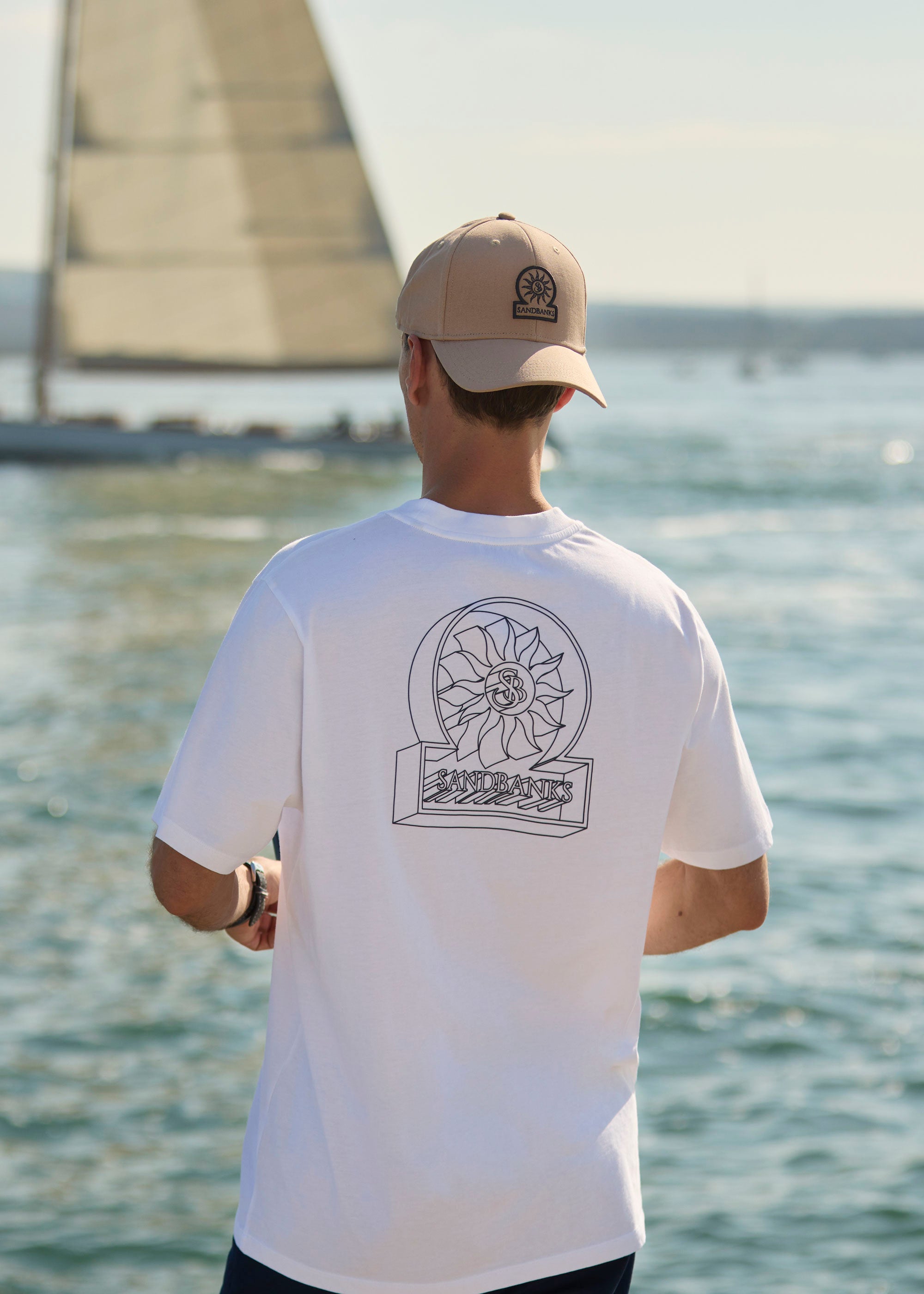 Sandbanks men's 3D logo printed t-shirt in white, made from 100% organic cotton. This t-shirt features a statement Sandbanks chest and rear print, and tri-colour back neck binding.