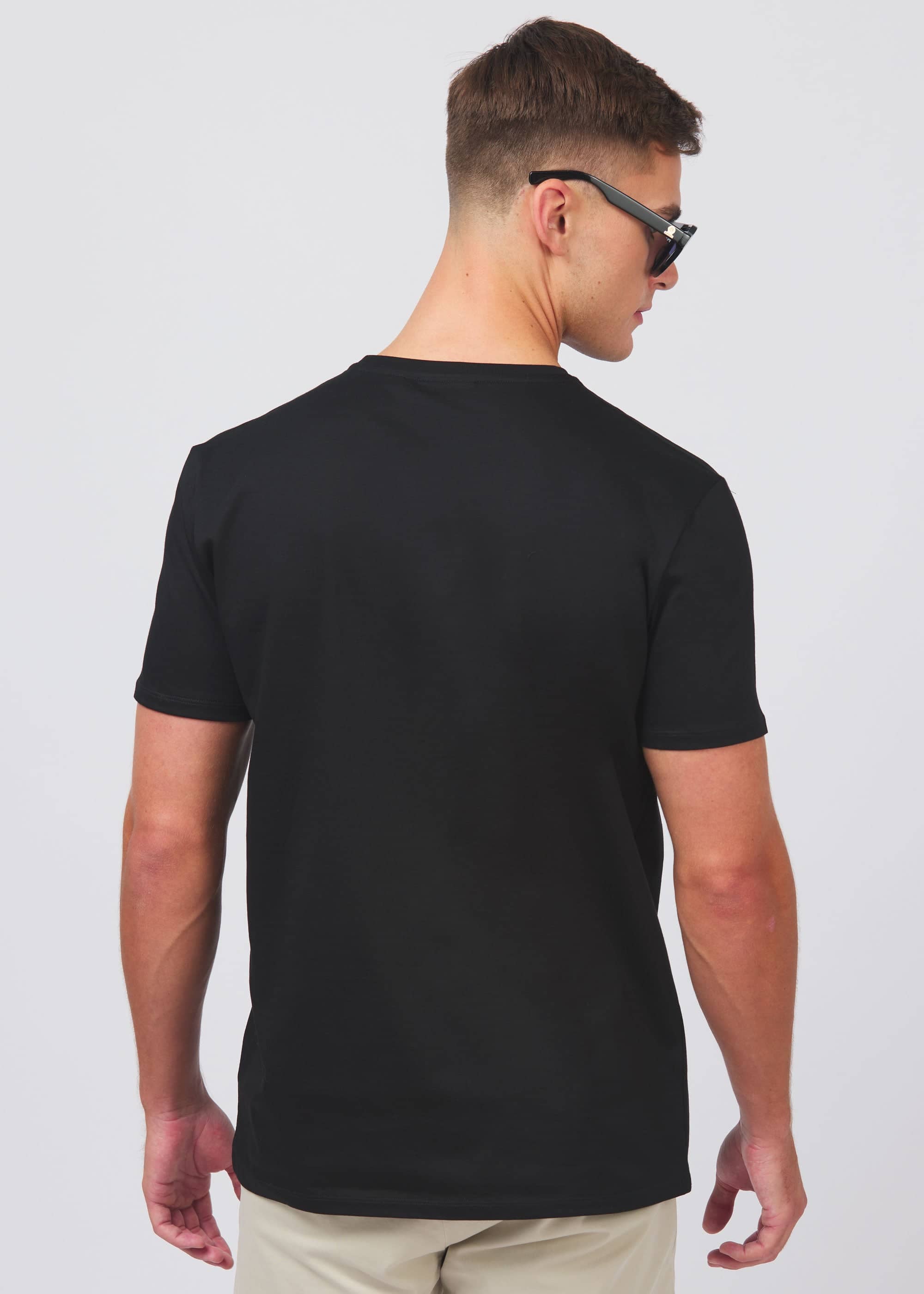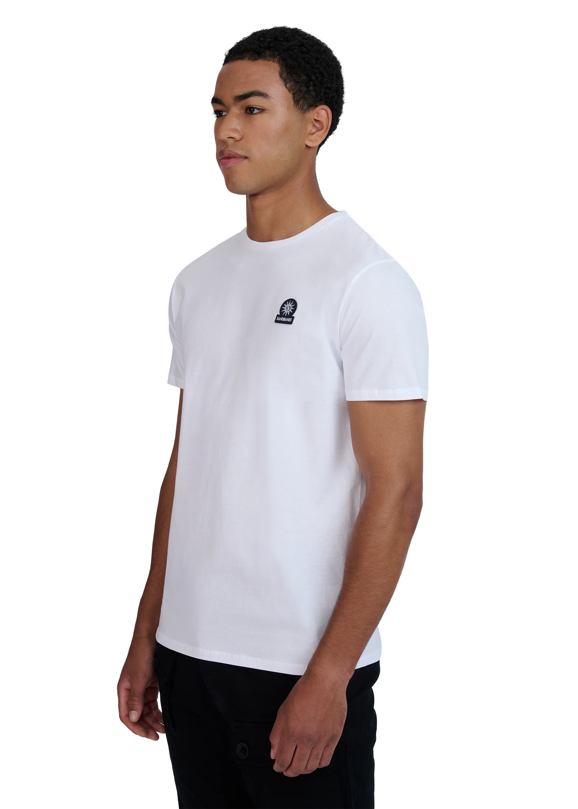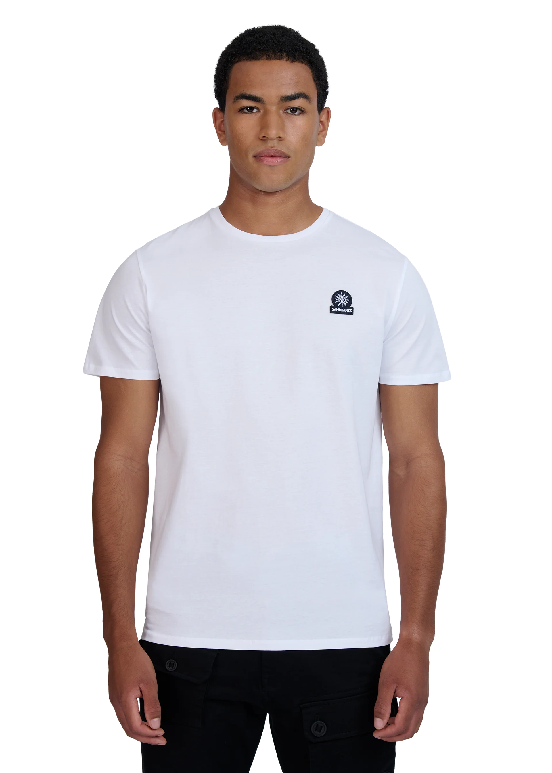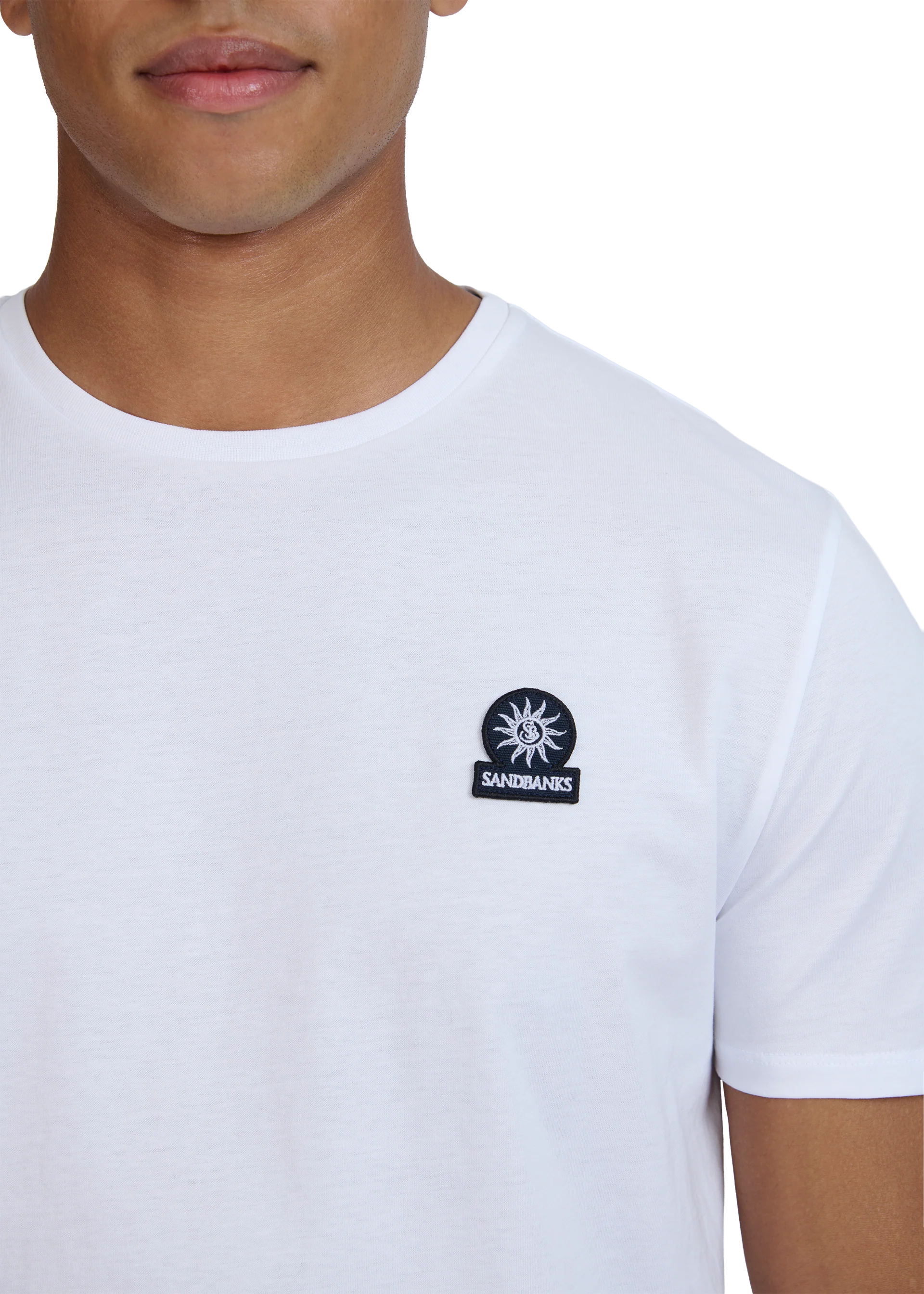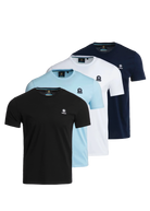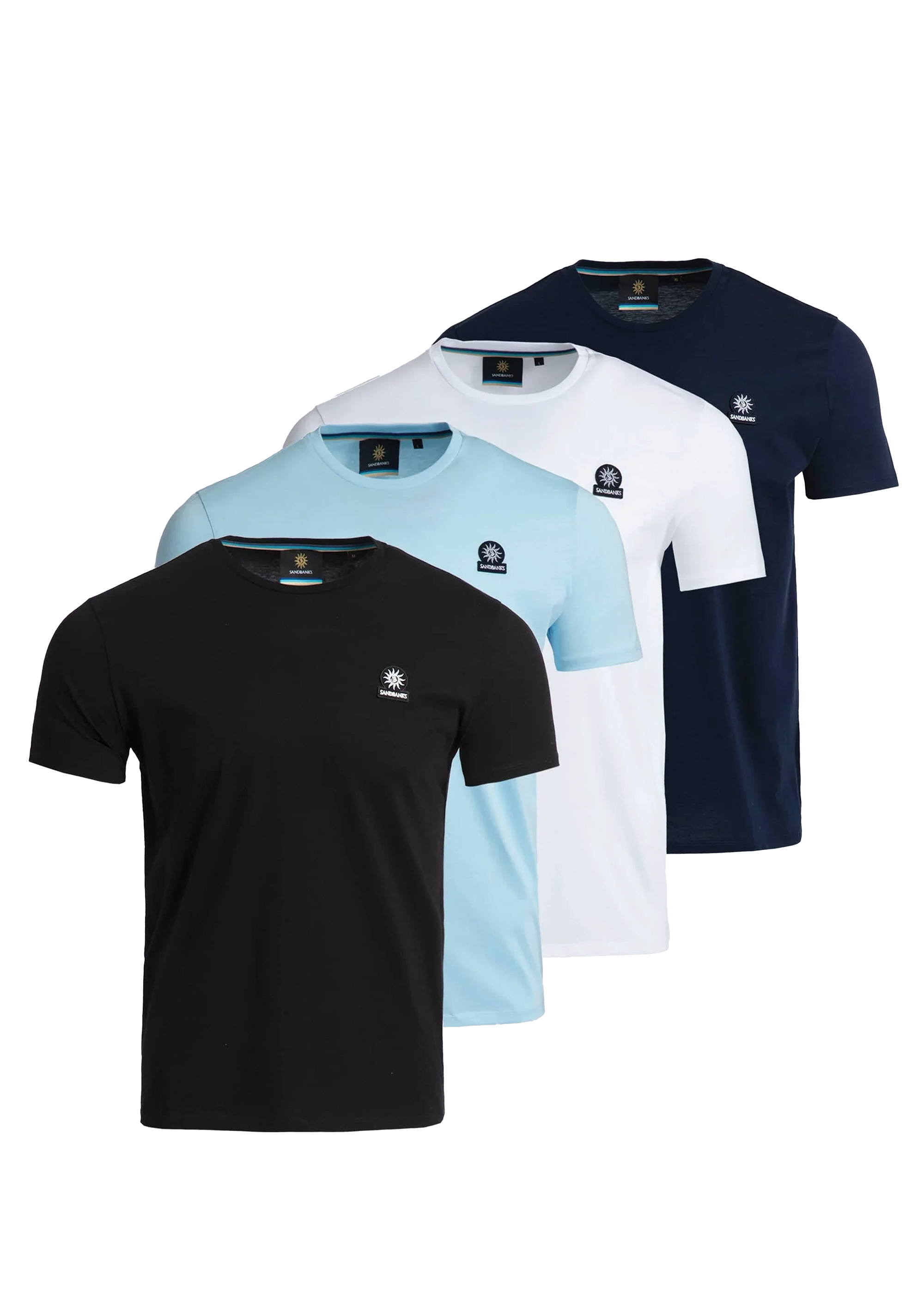 Pack of 4 Sandbanks Badge Logo T-Shirts in classic colours; Black, White, Navy and Crystal Blue. These classic fitting crew neck t-shirts are made from mercerised cotton for a silky and luxurious feel, feature an embroidered badge logo on the chest and tri-colour back neck binding.