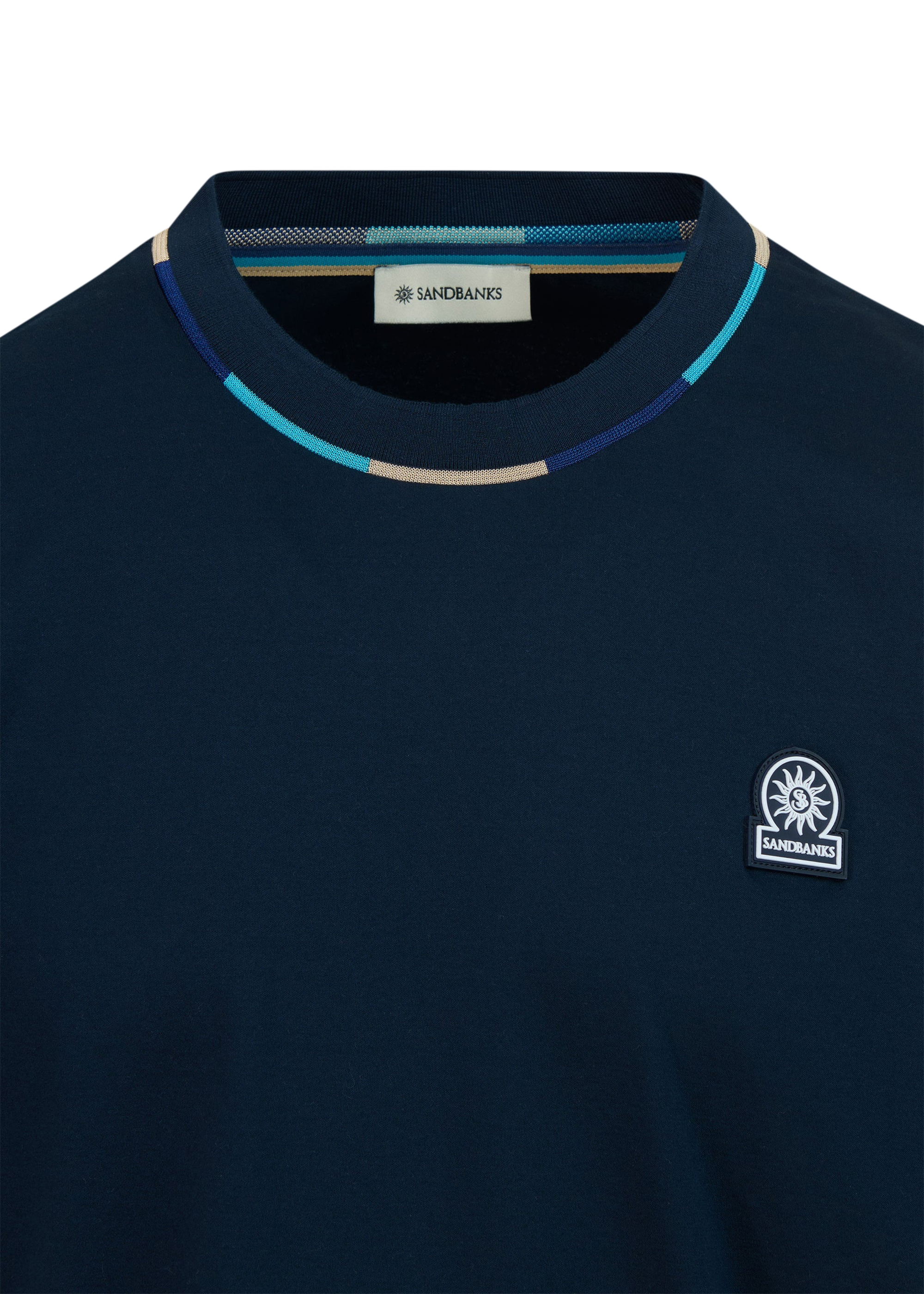 Sandbanks Tri-colour Neck T-ShirtNavy