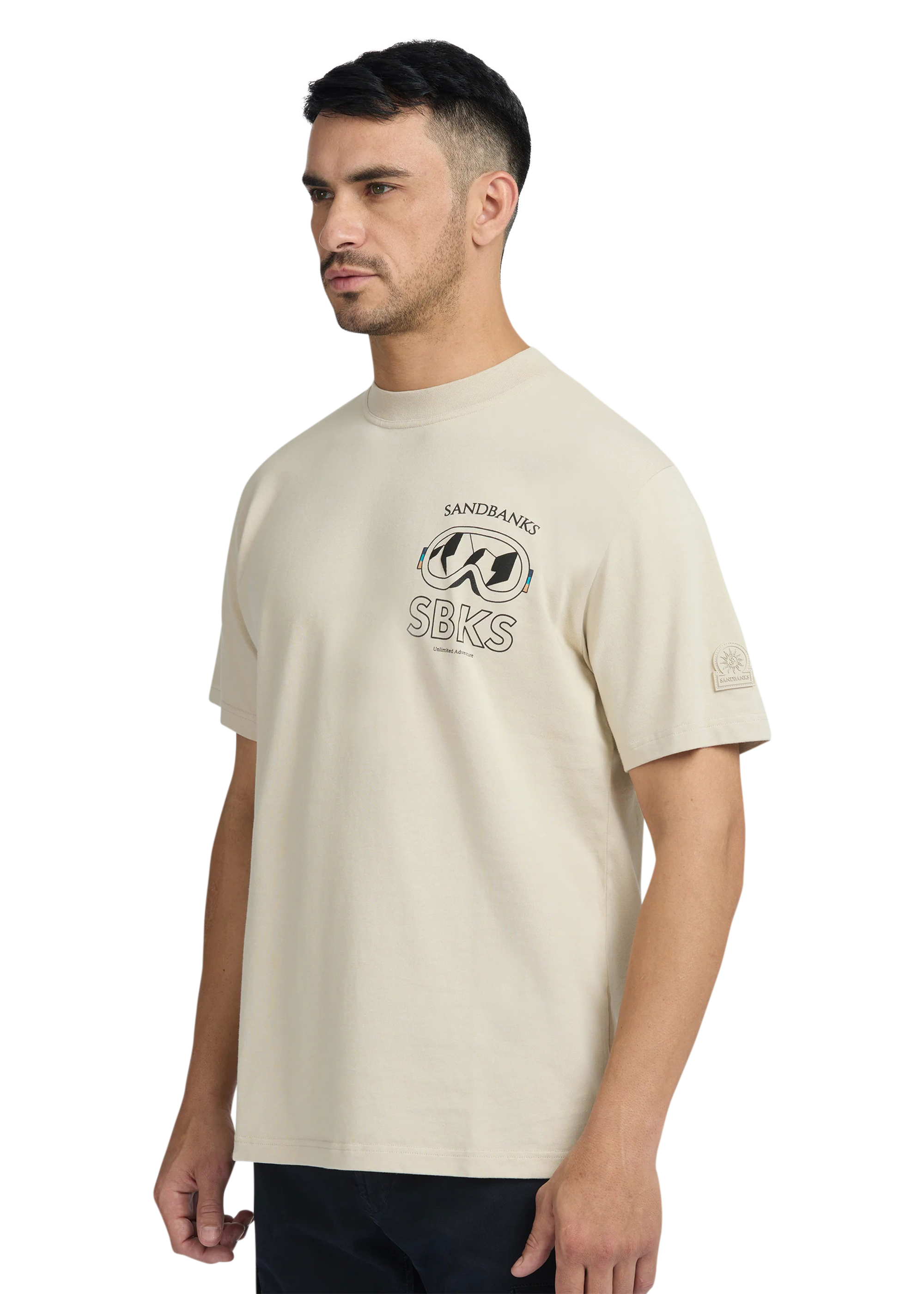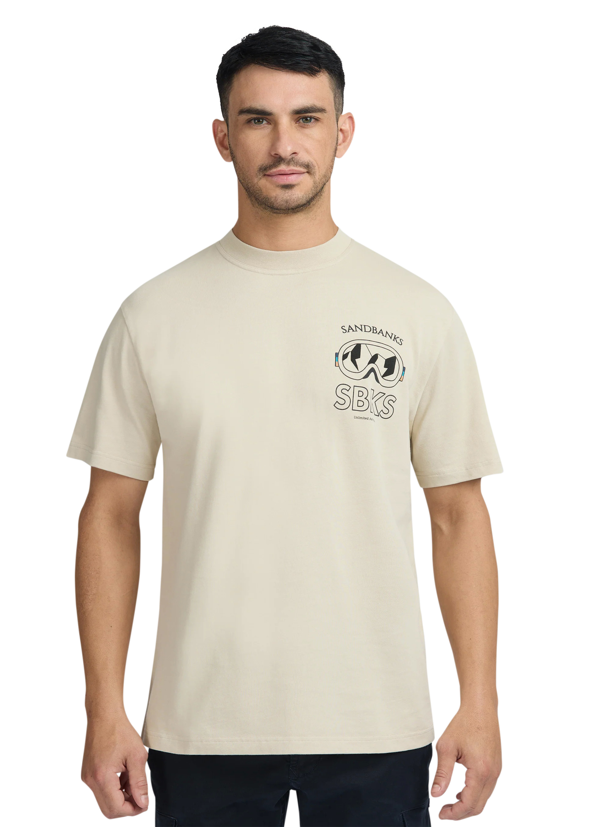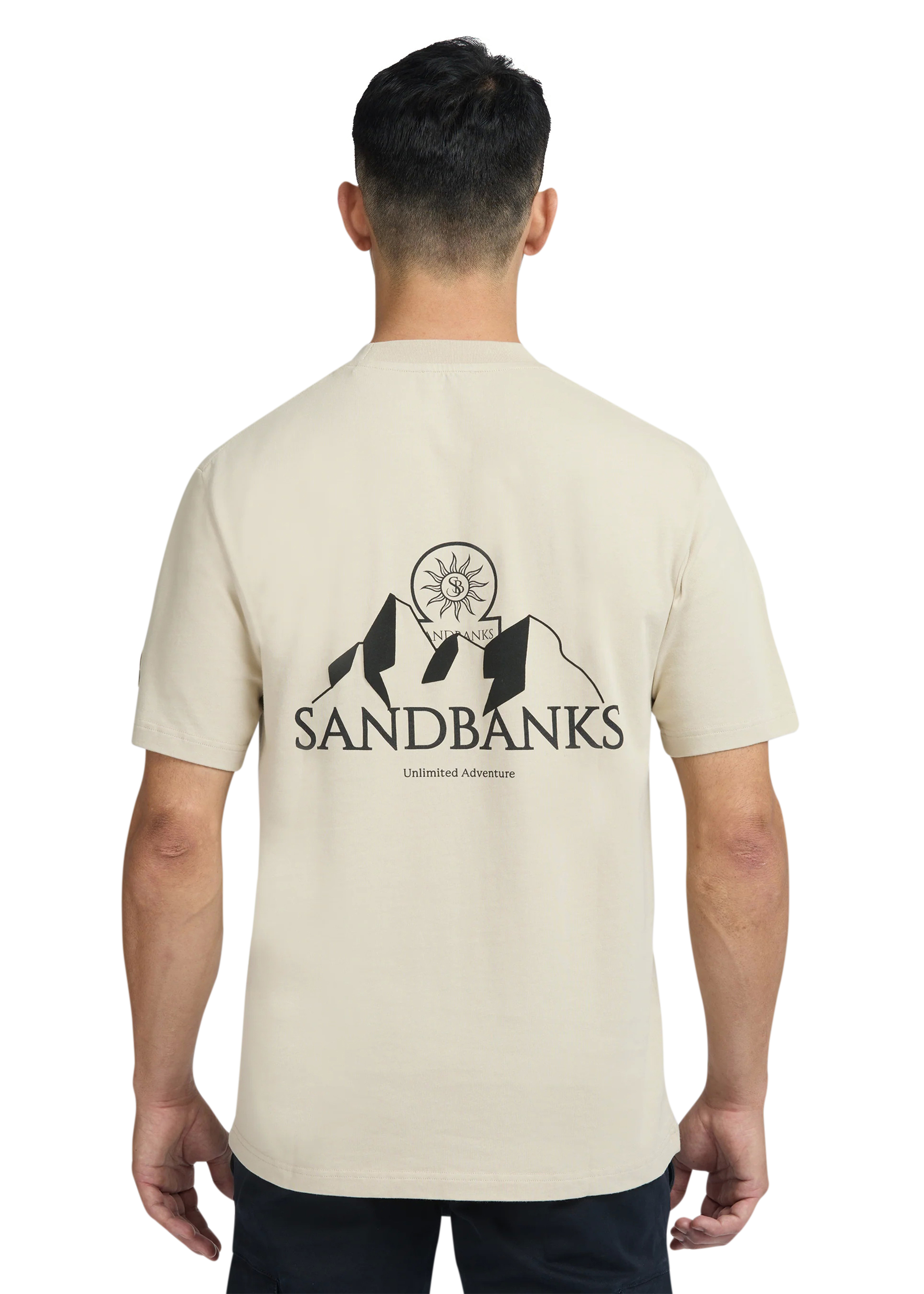 Our Sandbanks Unlimited Adventure t-shirt in stone is made from 100% BCI Cotton with tonal sleeve rubber badge logo and statement black unlimited adventure print. This edit captures the essence of outdoor exploration and the thrill of adventure, bringing the spirit of the mountains and the freedom of the open air into everyday wear.