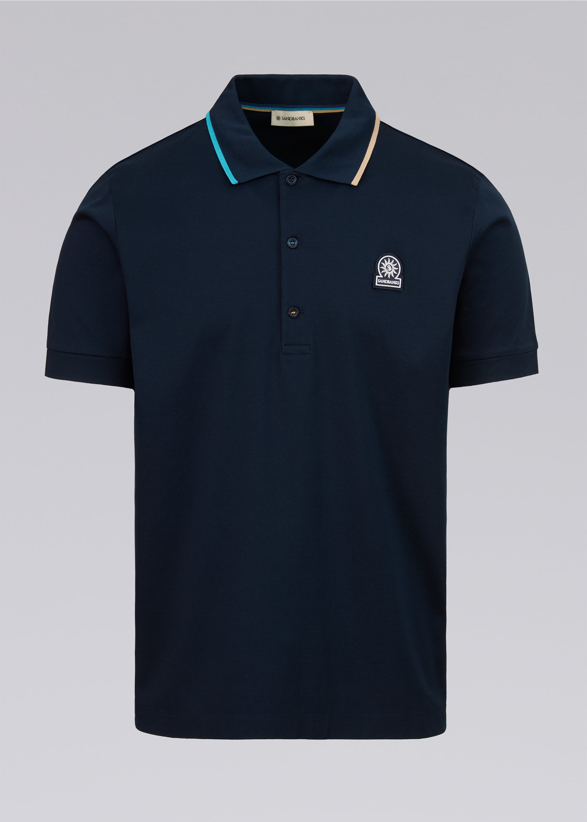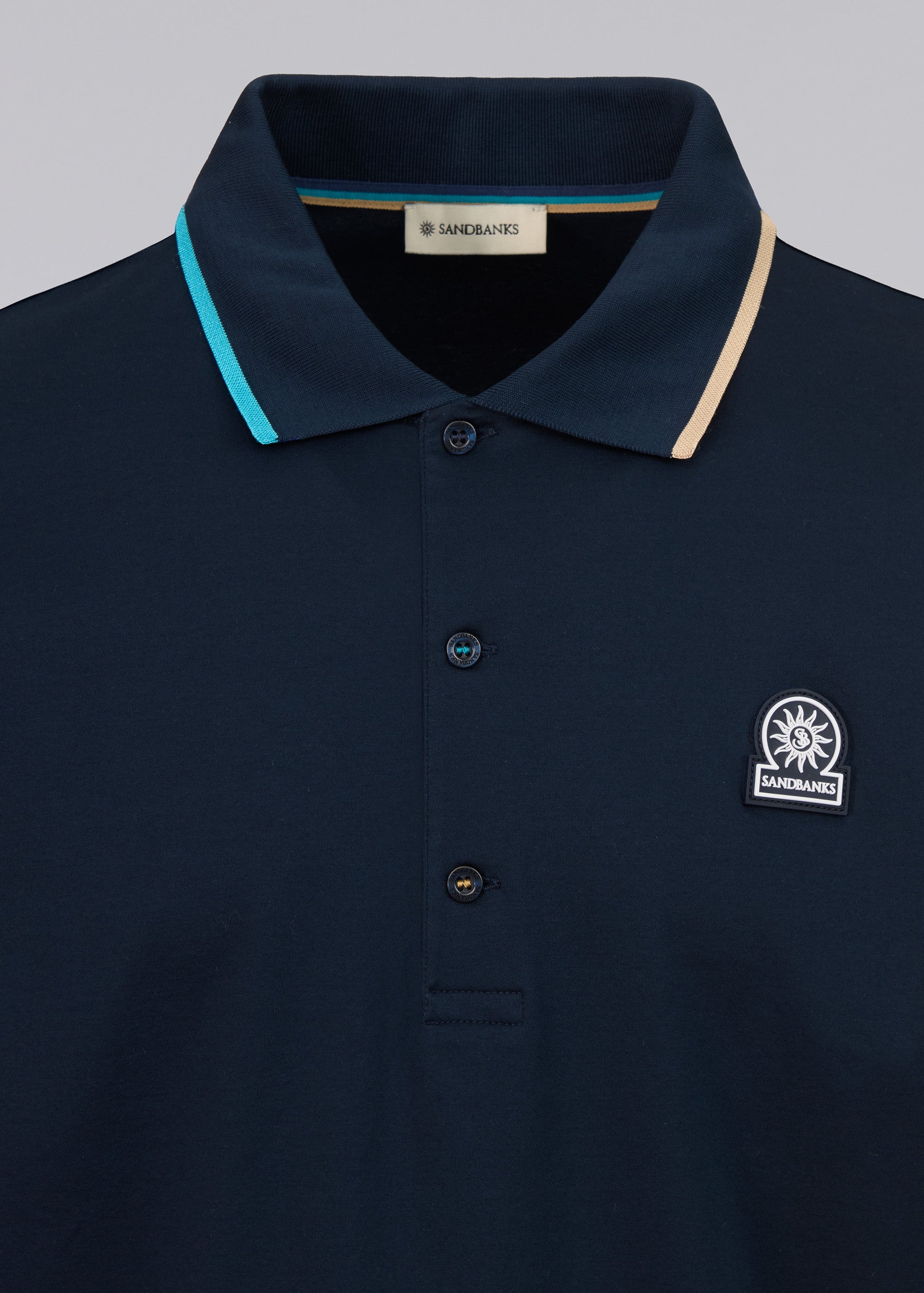 Sandbanks Tri-Colour Tipped 3-Button Polo ShirtNavy