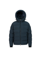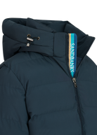 New for AW25 - the Sandbanks Banks Puffer Jacket with tri-colour wind placket. Made almost entirely from recycled plastic bottles with a navy shell fabric, this jacket has high thermal retention and features a Sandbanks embroidered logo badges, large lower pocket/chest pocket details and detachable hood.