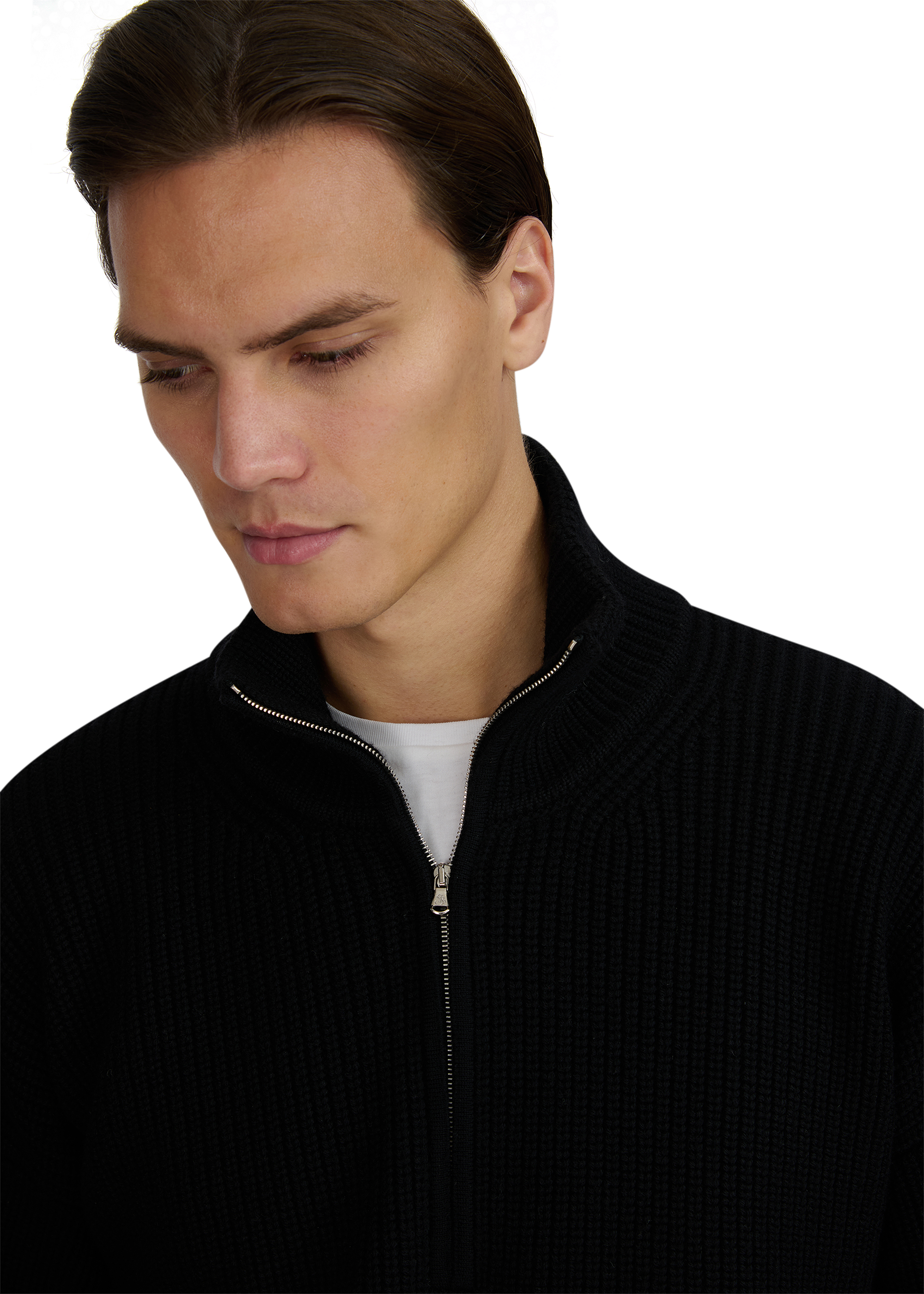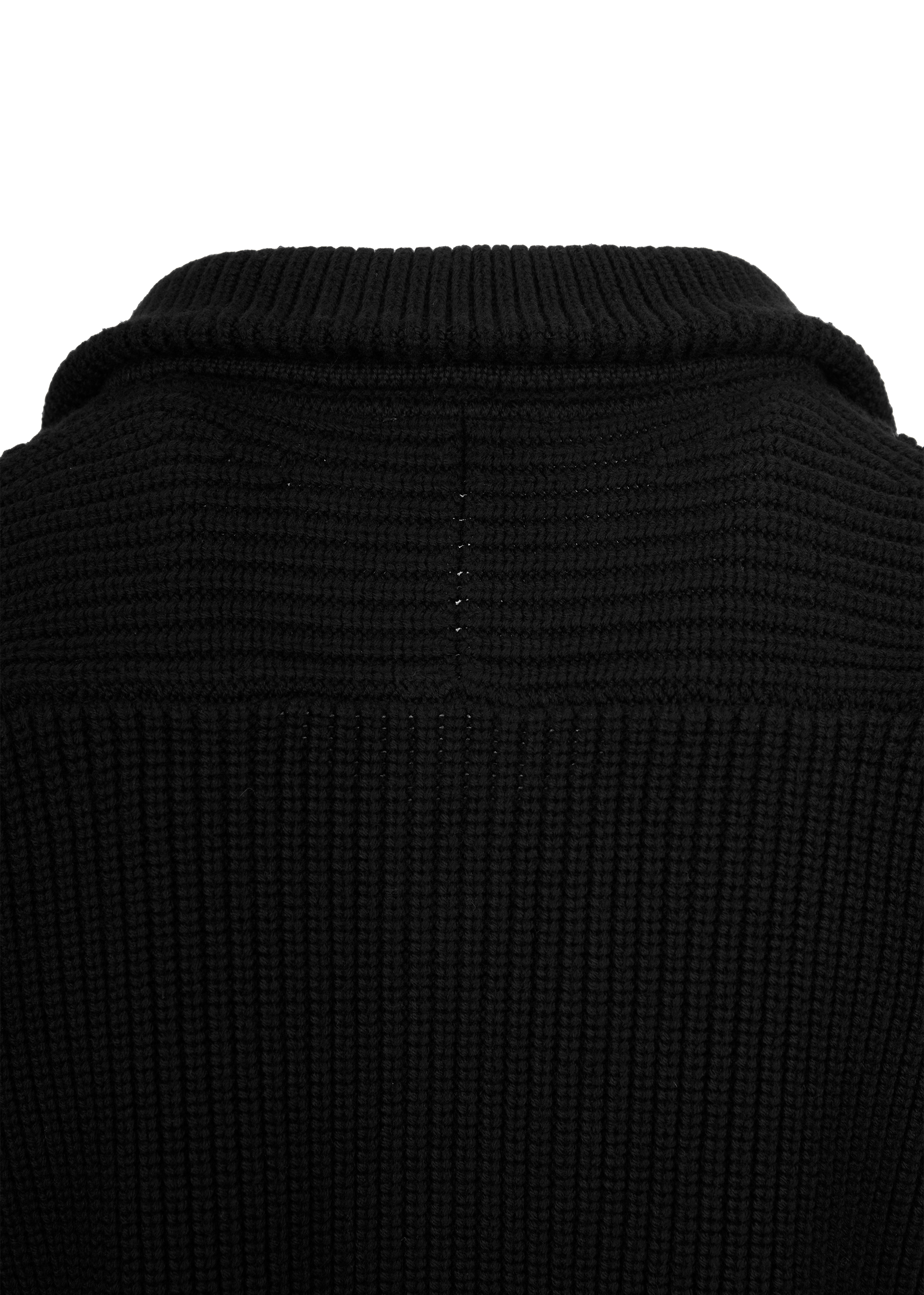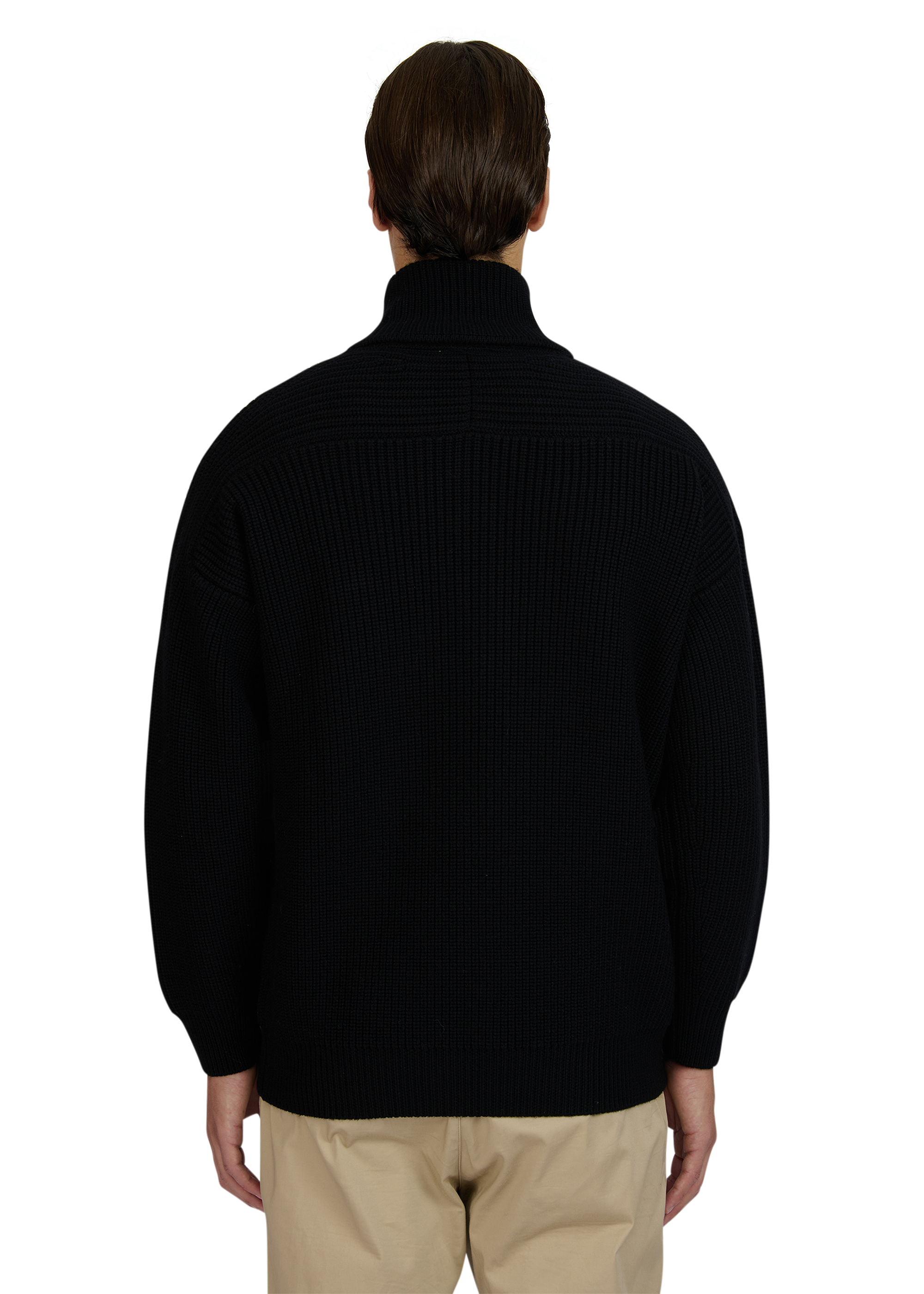 - Chunky knit ribbed collar, cuff and hem