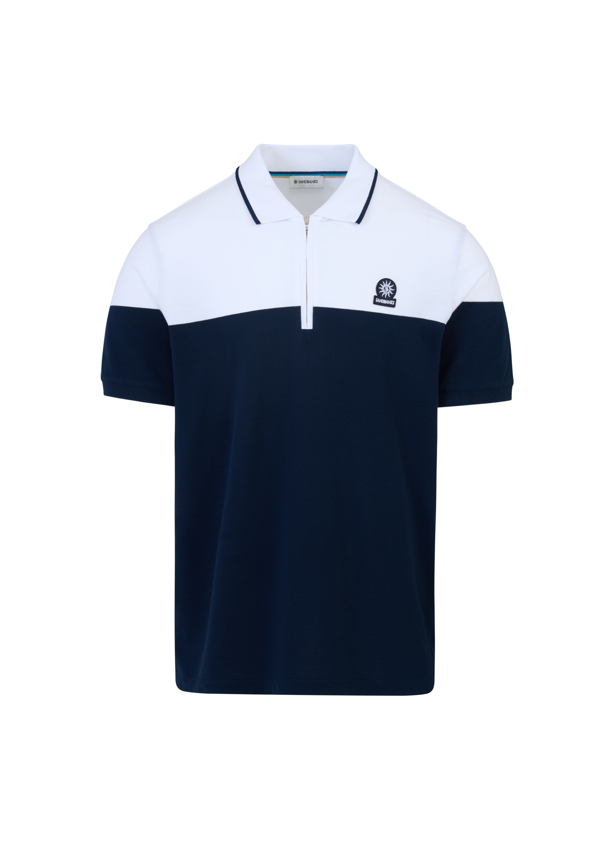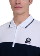 Sandbanks Colour Block Zip Polo ShirtNavy/White