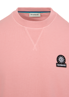 Sandbanks men's double jersey collegiate t-shirt in dusty pink, made from mercerised cotton for a silky and luxurious feel. This relaxed fit crew neck t-shirt features an embroidered badge logo on the chest and tri-colour back neck binding.