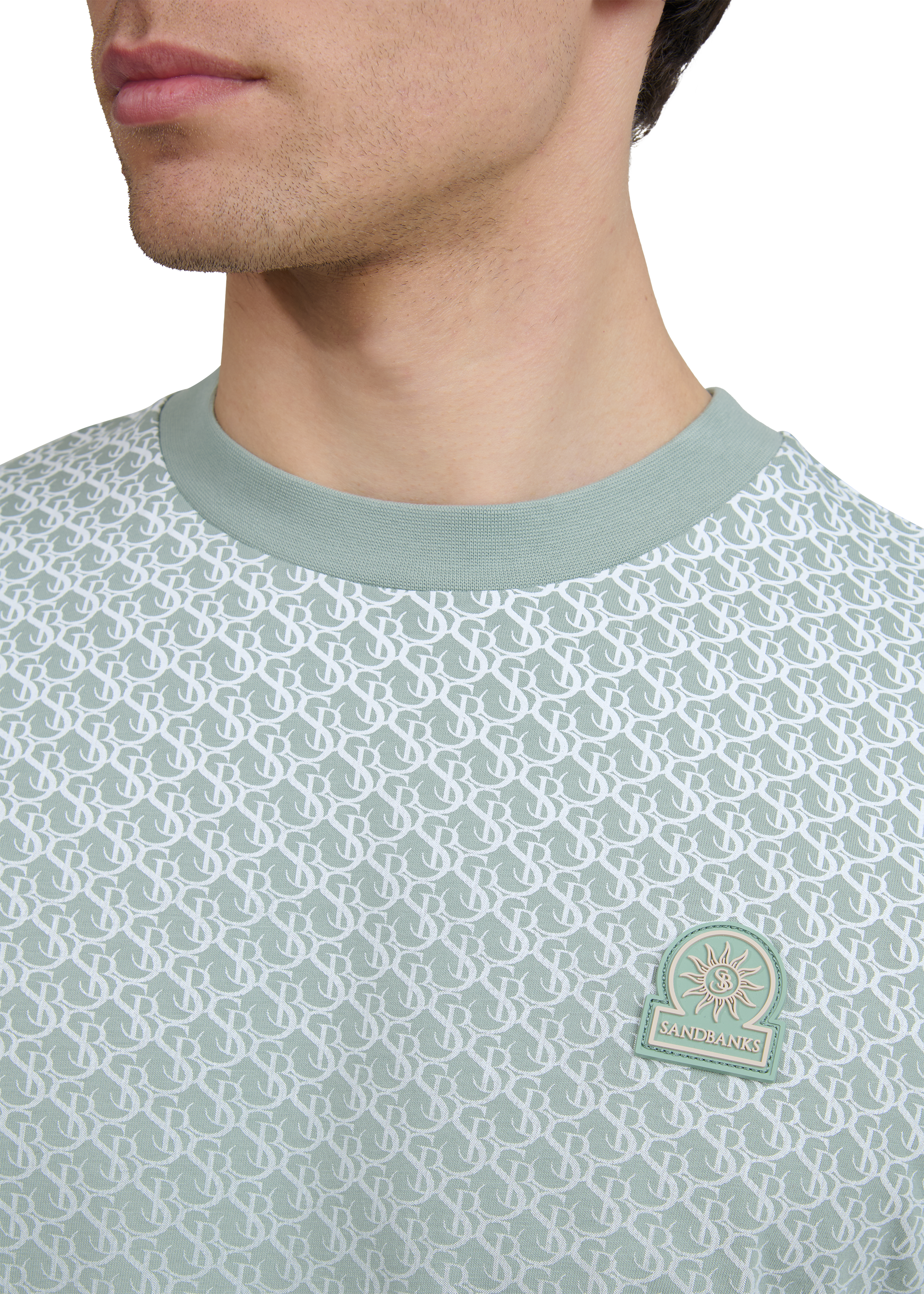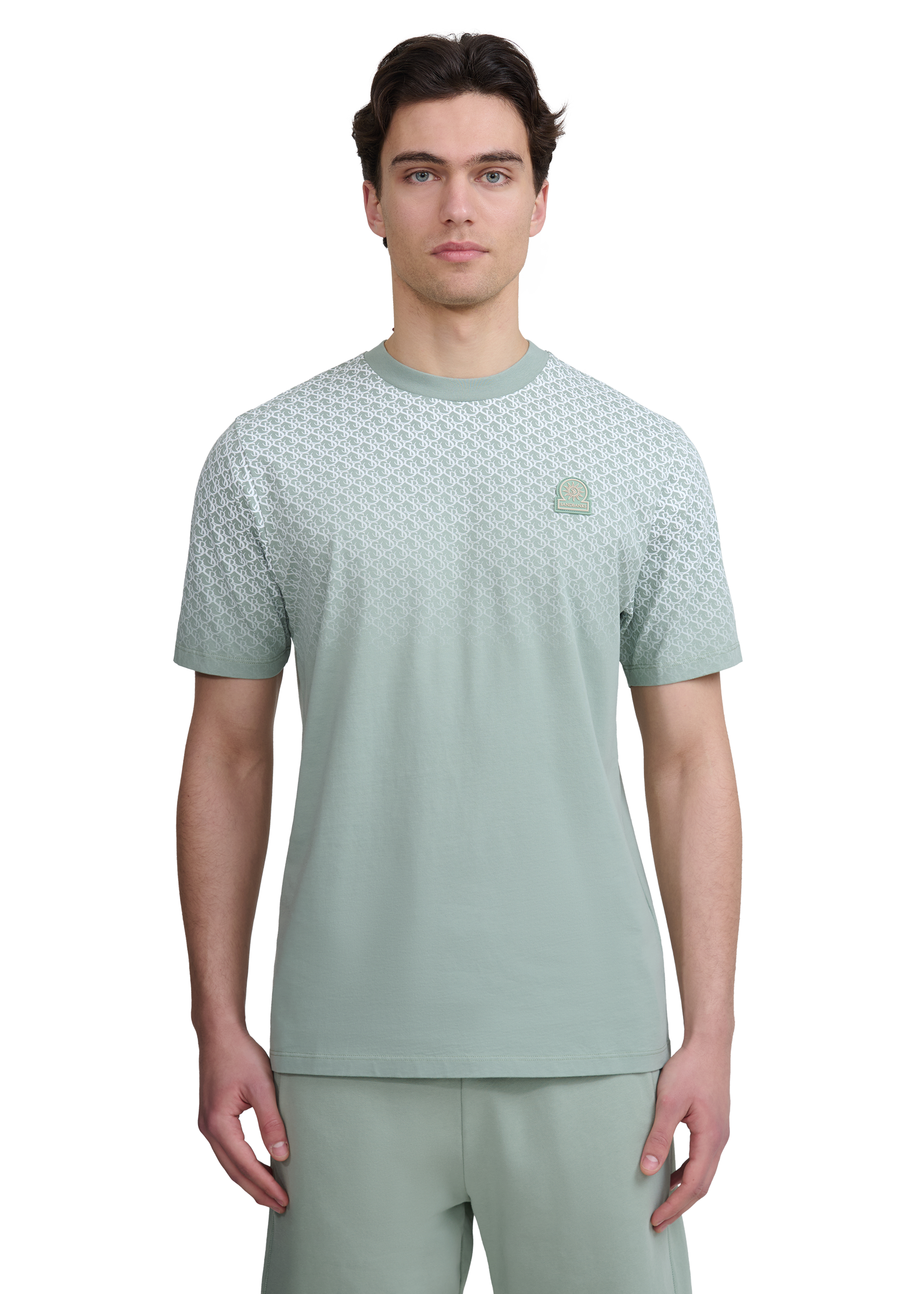 Crafted from 100% BCI cotton jersey, this T-shirt showcases the Sandbanks SB monogram in a faded gradient chest print. Finished with a tonal rubber badge logo, it brings a subtle branded detail to everyday wear.
