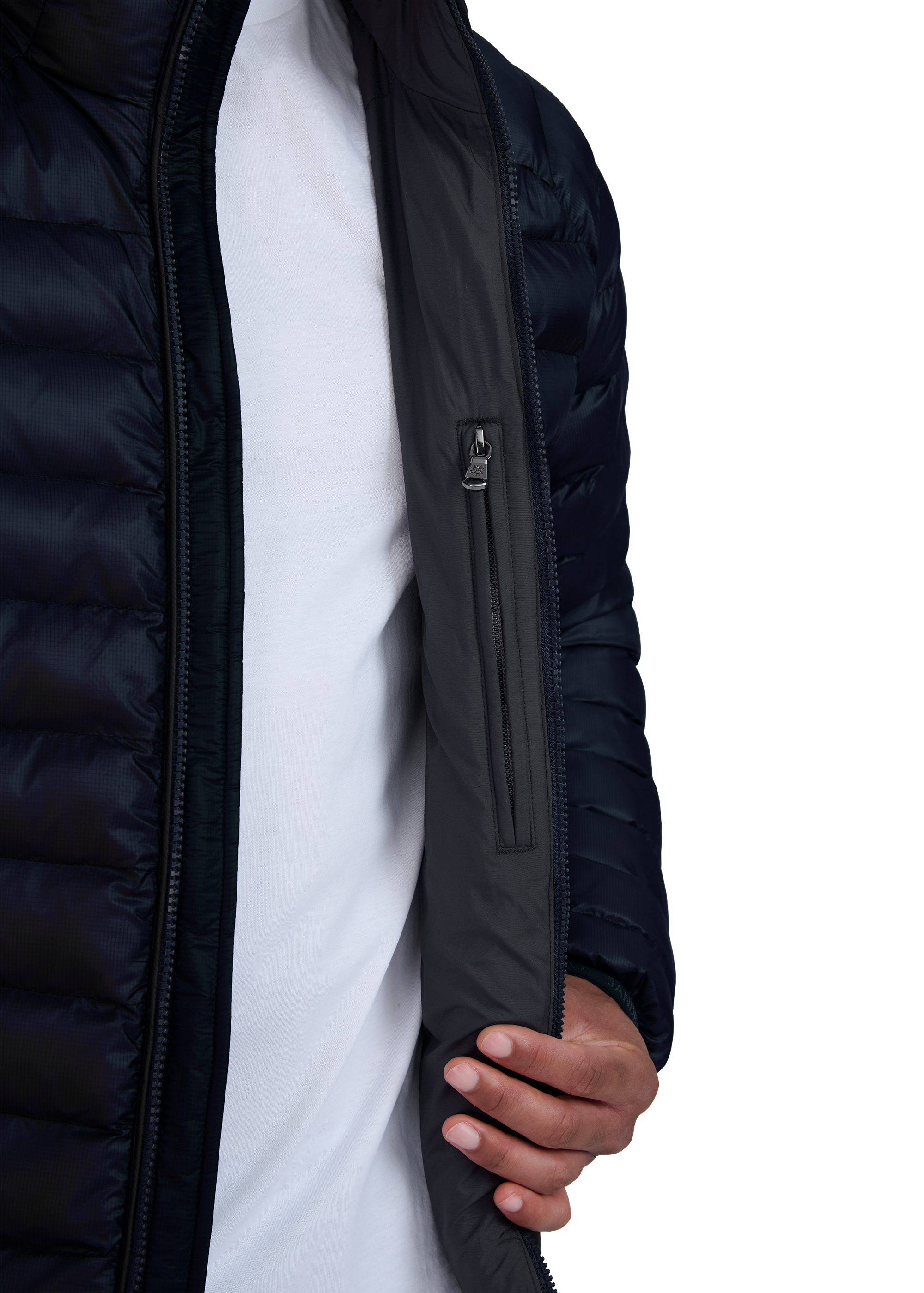 - Sculpted quilting: wider at chest, slimmer at waist for a tailored fit