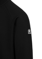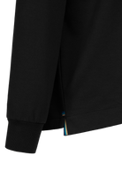 Sandbanks men's interlock raglan quarter zip sweatshirt in black. This classic fitting garment is made from an interlock fabric for a superior smooth finish, featuring tonal rubber badge with contrast branding, and Lampo metal zip in silver with a ribbed neck.