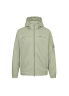 Lightweight and built for movement, this hooded nylon windbreaker is a modern Sandbanks essential. Featuring an adjustable hood designed to provide practical coverage, it offers protection from wind and light rain, complemented by a breathable Airtex lining and discreet ventilation through the chest and back yoke. A YKK two-way zip with storm flap and zip guard delivers a refined, protective finish. Cut with a clean, straight fit that layers comfortably without added bulk, it presents a modern, streamlined silhouette. Finished with a signature embroidered Sandbanks badge on the sleeve pocket.