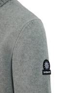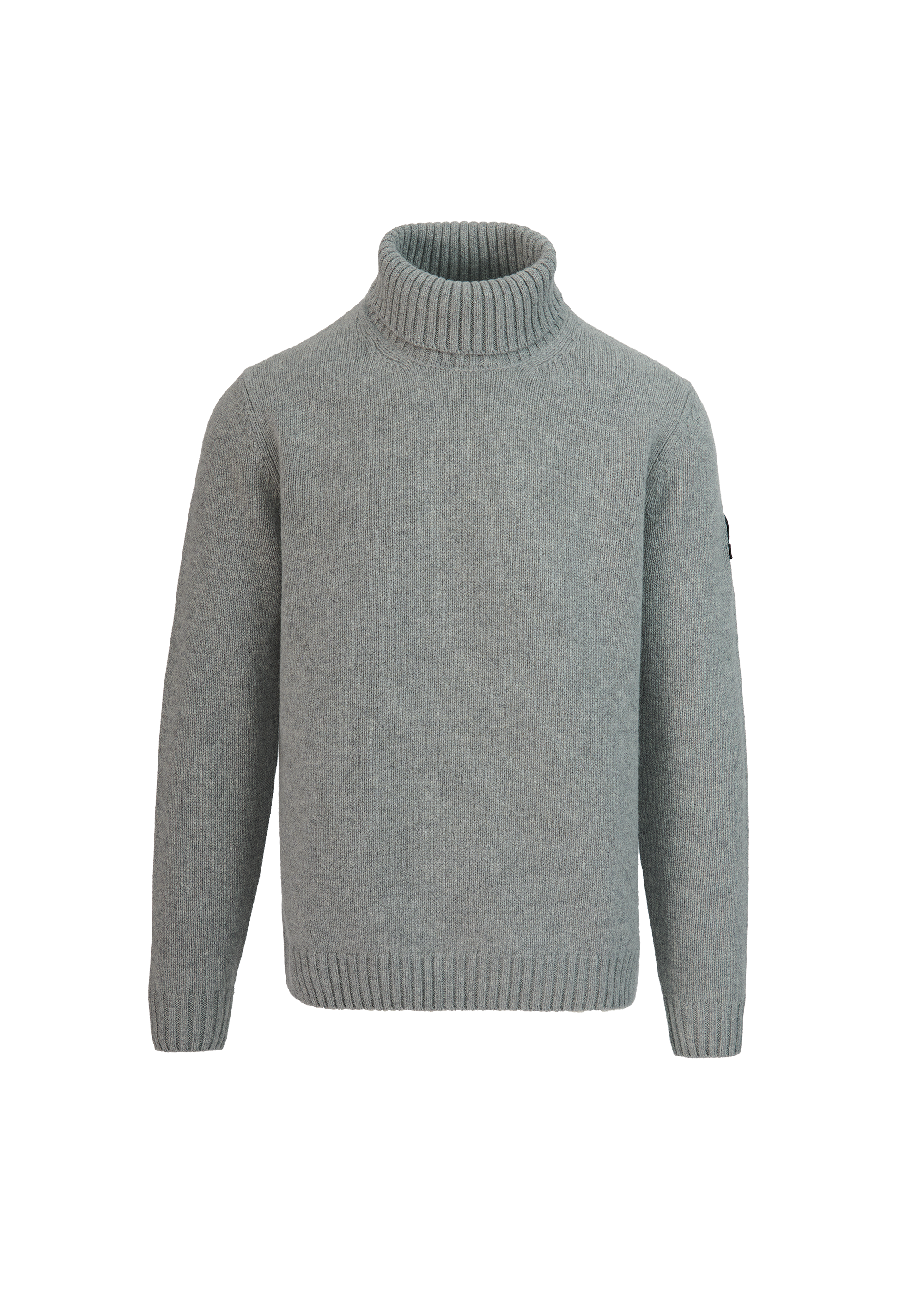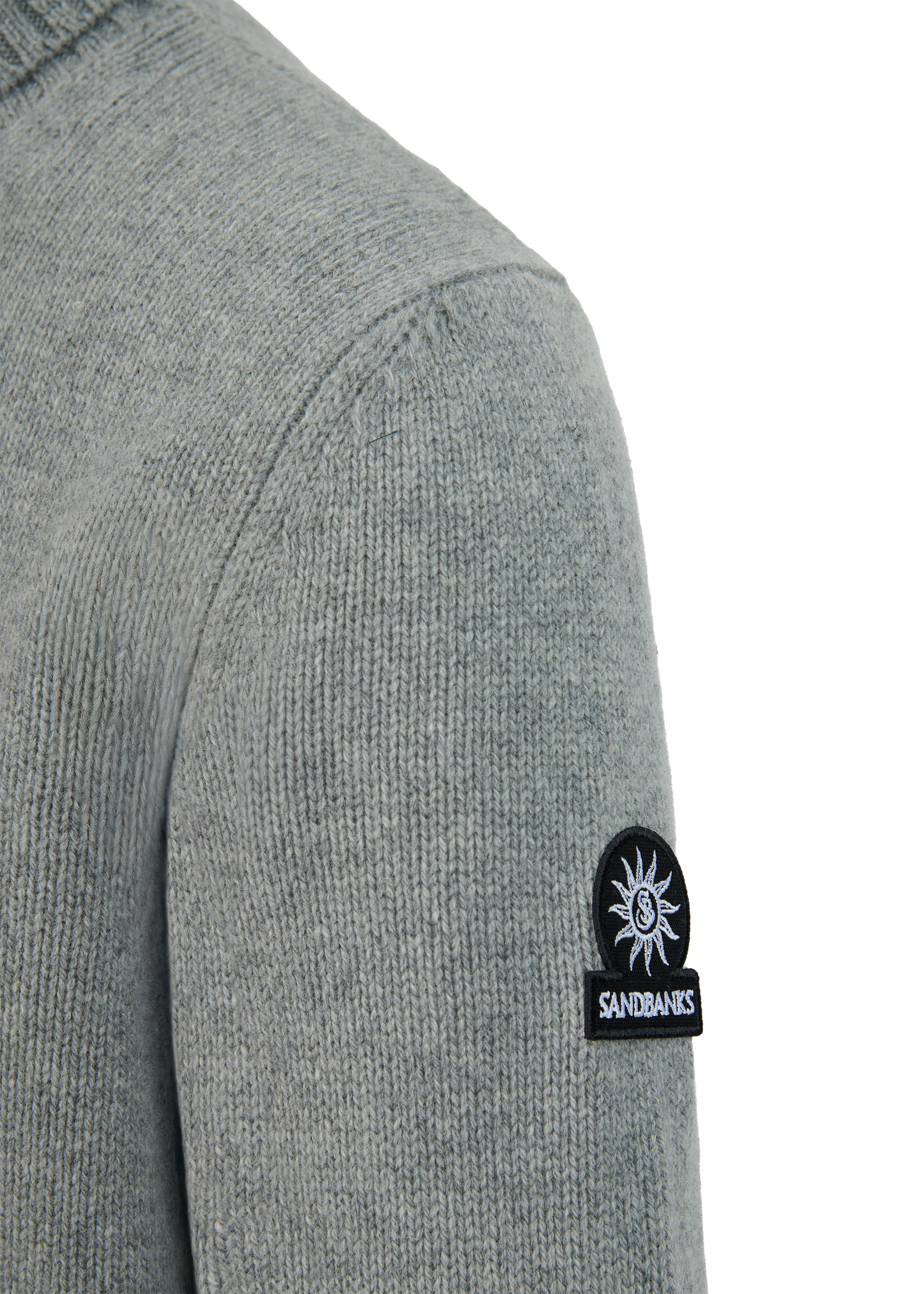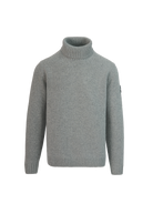 Sandbanks Merino Wool-Cashmere blend roll neck in light grey. Made with a premium Italian blend, this timeless piece offers unmatched comfort. Knitted in a 5-gauge structure for a rich, supple feel, it features a classic roll neck with ribbed trims. Finished with the signature Sandbanks embroidered badge and tri-colour neck binding, this piece reflects precision craftsmanship and modern luxury.