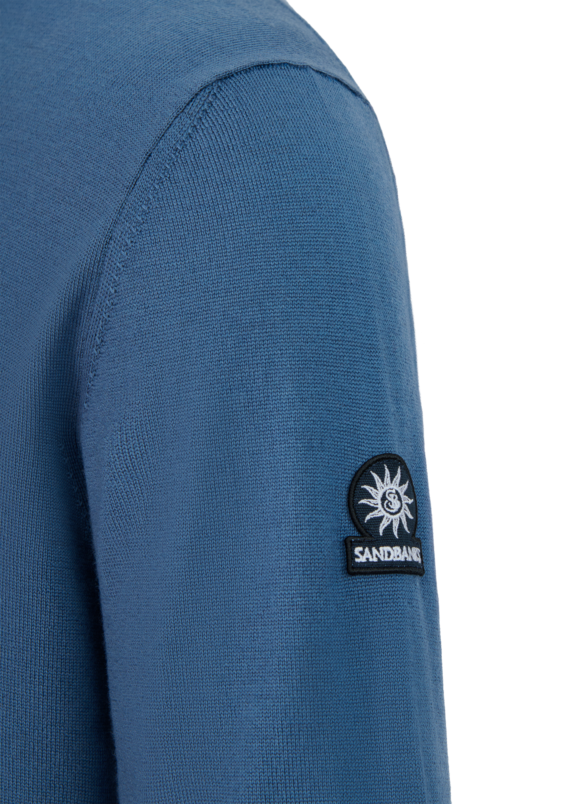 The Sandbanks Merino wool crew neck jumper in teal is crafted with ultra fine 100% Merino Wool from Italy. This knitted jumper features a Sandbanks logo badge embroidery on the the sleeve and is an easy to wear layering piece throughout the seasons.