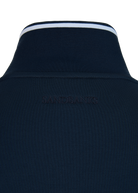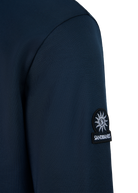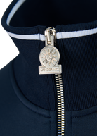 Sandbanks men's tricot track jacket in navy. Crafted from smooth 360 GSM tricot fabric with a clean, structured finish, it features a rib with contrast stripe and a high-shine eco-silver branded Lampo metal zip. Finished with welt pockets with concealed snap closures and subtle Sandbanks embroidery at the neckline, the design combines function with signature detailing. Designed to pair with the matching track pant.