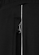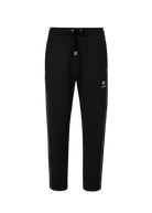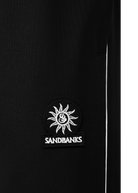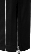 Sandbanks piped track pant in black. Relaxed track pants crafted from smooth 360 GSM tricot fabric. Accented with contrast piping, a signature embroidered badge, side entry zip pocket and branded side zips at the hem. Completed with branded metal eyelets, cords and waistband drawcord. Designed to pair with the matching track jacket.