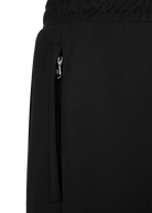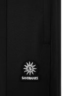 Sandbanks pleated tricot track pant in black. Relaxed track pants crafted from smooth 360 GSM tricot fabric. Detailed with front and rear pleats, elasticated waist band with internal drawstring, signature embroidered badge, concealed zip side entry pockets and branded metal side zips at the hem. Designed to pair with the matching track jacket.