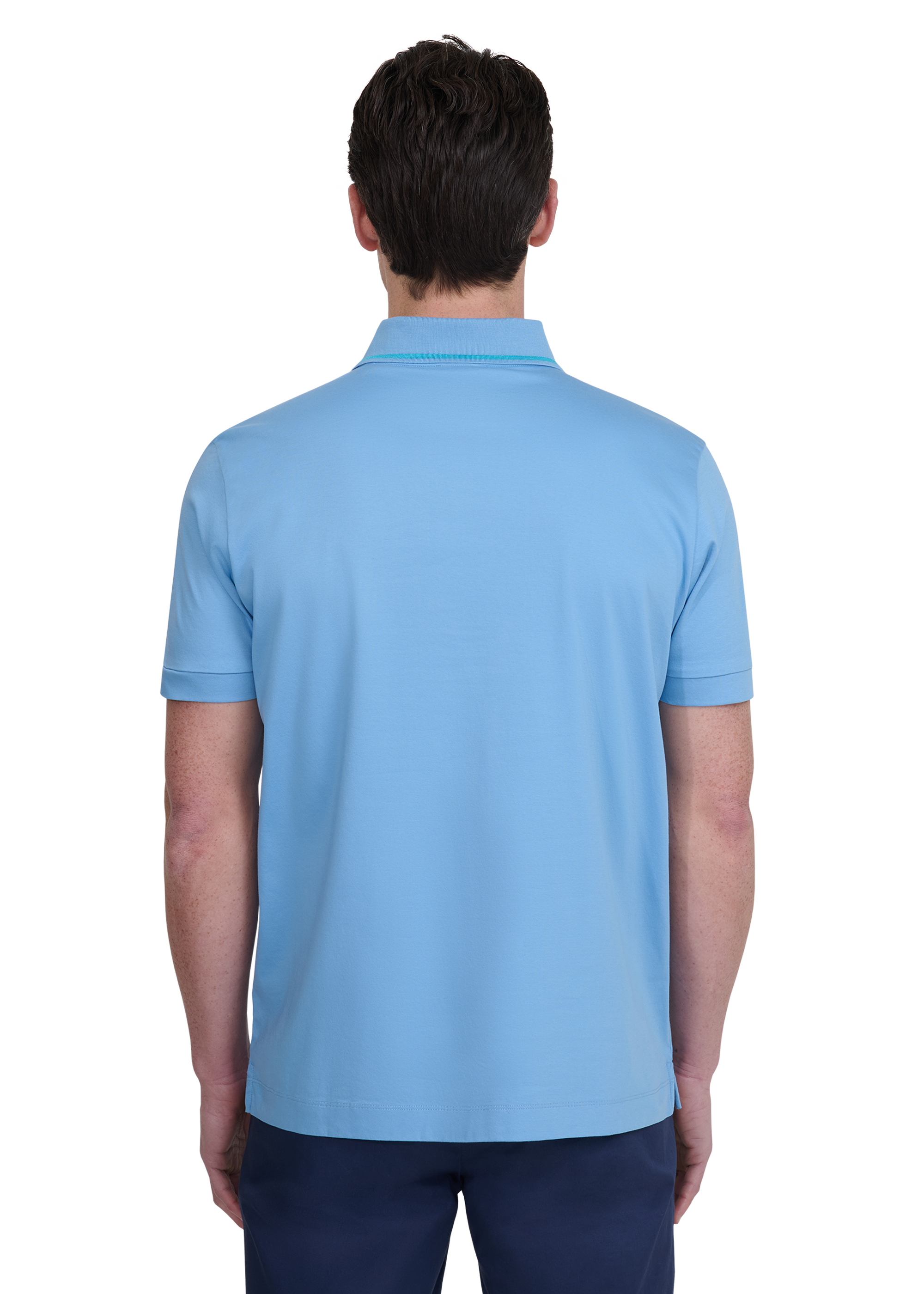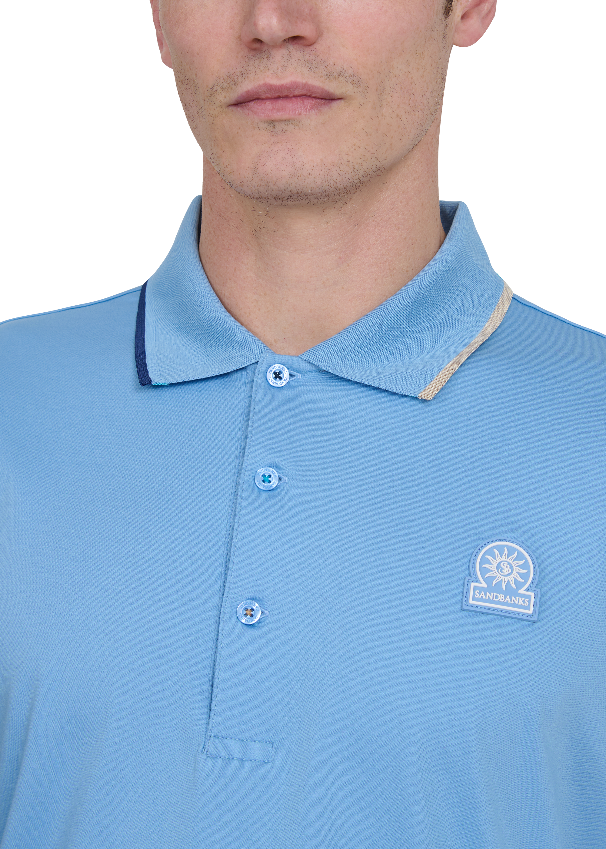 Sandbanks Tri-Colour Tipped 3-Button Polo ShirtDusty Blue