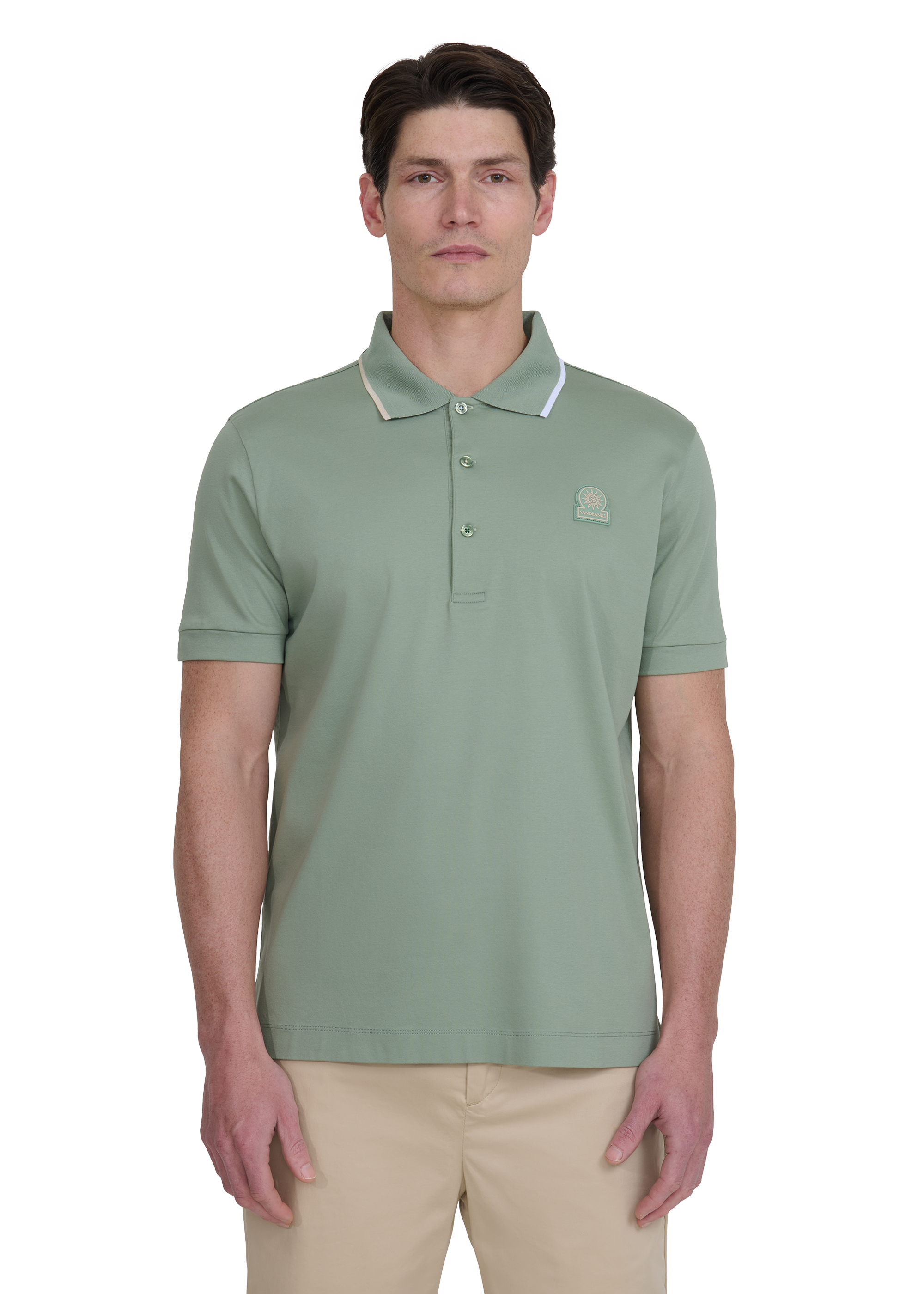 Sandbanks Tri-Colour Tipped 3-Button Polo ShirtSage