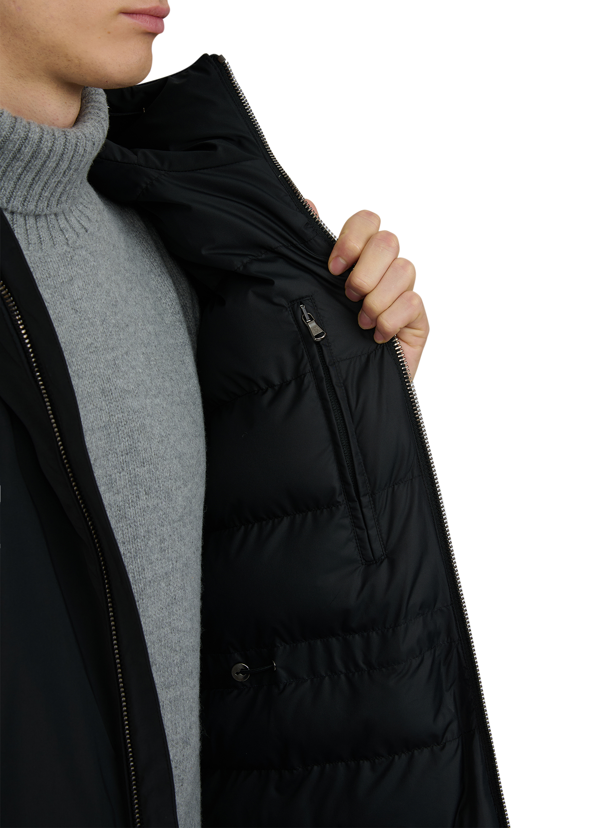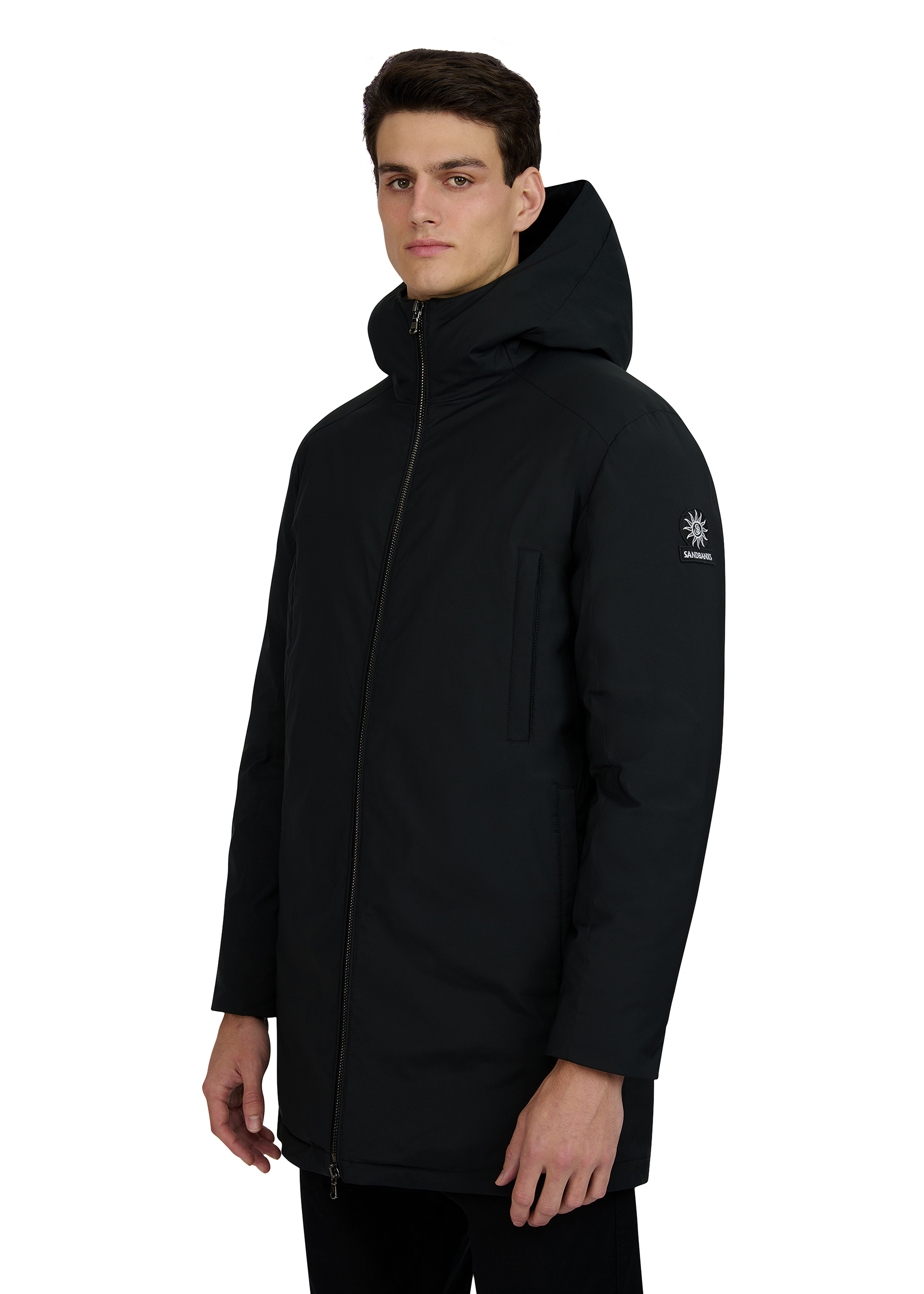 The Sandbanks Canford Terrace Jacket is engineered for performance and comfort in changing conditions. Crafted from a water-resistant shell, it offers protection from light rain and wind while remaining lightweight and easy to layer. The design features an A-line silhouette, two-way metal Lampo zip with metal pullers a high collar with a concealed hood adjuster for added coverage. Eco-down insulation ensures warmth with minimal weight, while the versatile 4 front zip pockets benefit from fleece lining to provide extra comfort. Finished with engraved metal components and an embroidered Sandbanks sleeve badge.