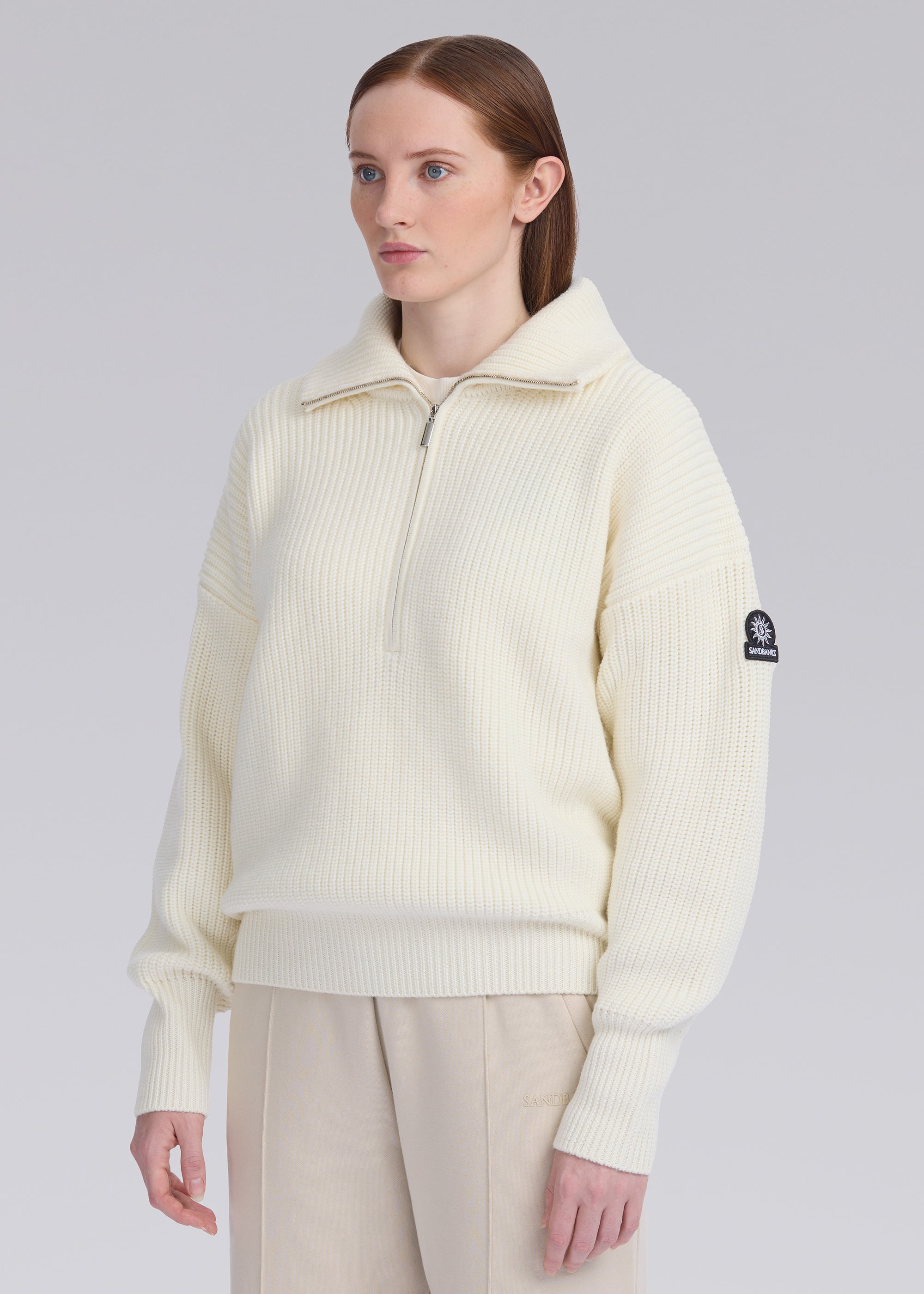 Sandbanks Women's Half Zip Knitted JumperEcru