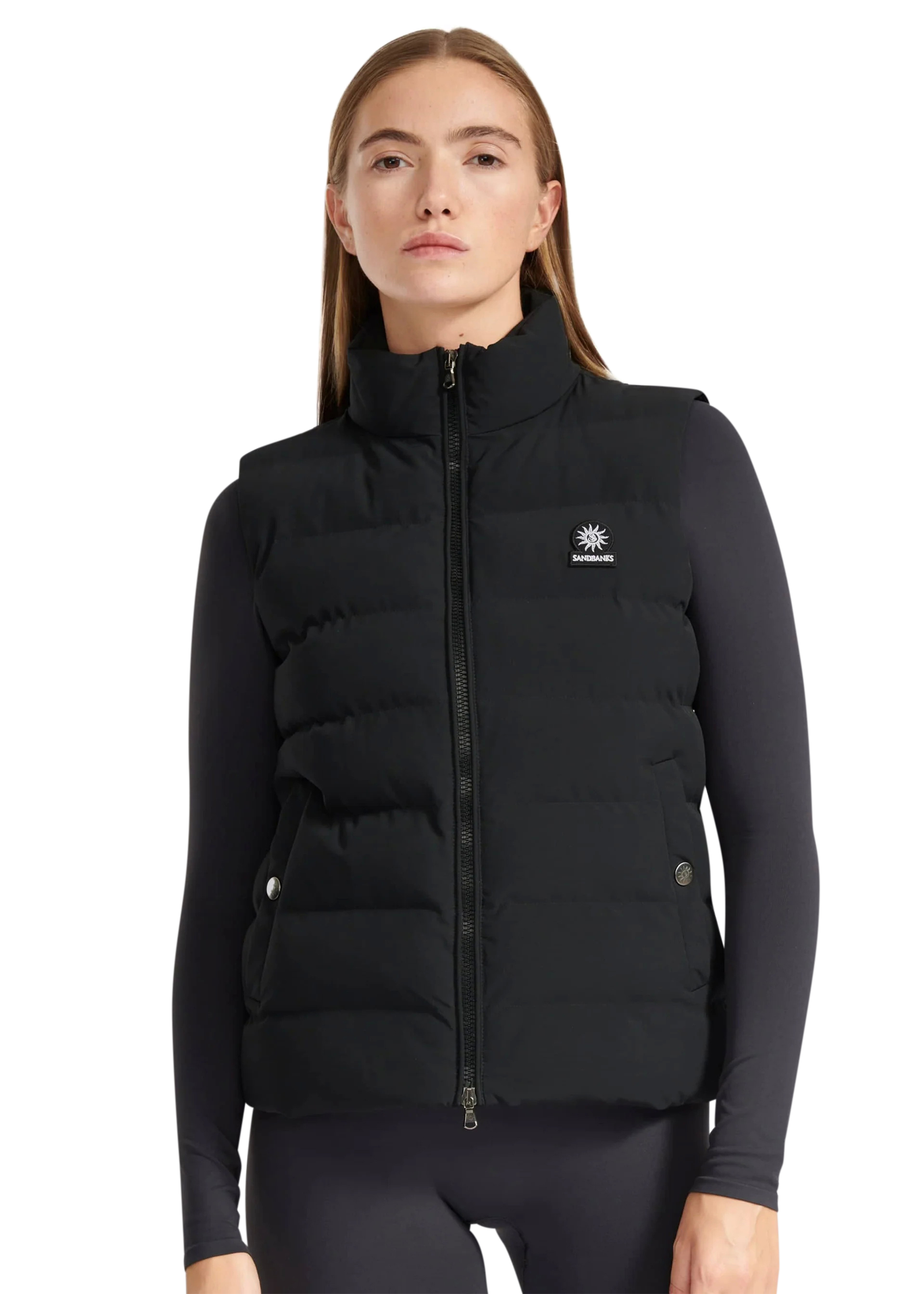 Sandbanks Marina gilet for women is made almost entirely from recycled plastic bottles. With a black outer shell fabric, this gilet has high thermal retention, and features statement Sandbanks embroidery details.