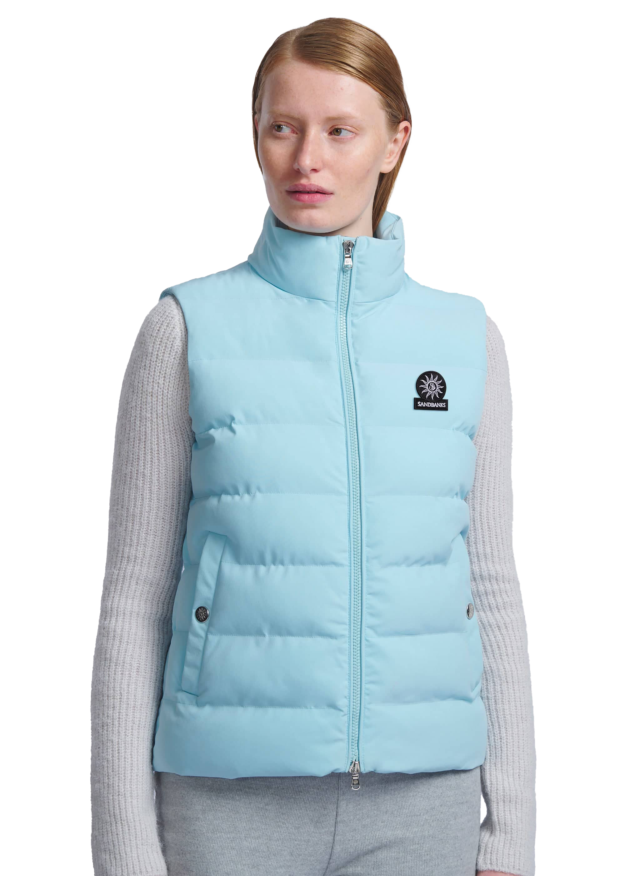 Sandbanks™ Marina gilet is made almost entirely from recycled plastic bottles. With a light blue outer shell fabric, the MARINA GILET has high thermal retention, and features statement Sandbanks embroidery details.