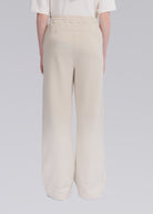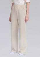 Our women's Sandbanks wide leg track pants in stone are constructed with a 400gsm diagonal knitted fabric that features a slight brushed back for a superior soft feeling and warmth, whilst remaining breathable. Made from 100% BCI Cotton with a tonal Sandbanks raised rubber print, and internal tri-colour flat draw cord.
