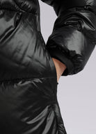The Sandbanks Women's Monogram Long oversized puffer/gilet jacket is featured with a black shiny shell fabric, with removable sleeves transforming into a statement gilet. With refined design elements including side opening zip vents with contrast monogram placket, shiny black engraved components, branded tonal elastic, contrast felt badge with rubber logo badge, fleece lined zip pockets and Sandbanks Monogram baffles.