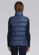 Sandbanks Pebble funnel neck gilet for women in navy, made from luxury Italian recycled fabrics and components. This high thermal retention gilet features our signature Sandbanks contrast placket embroidery, swirl embroidered chest badge logo and polar fleece lined zip side pockets.