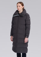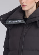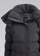 The Haven Long Puffer is finished with premium details including gunmetal components and Lampo zips featuring unique engraved Sandbanks branding. The placket features a statement Sandbanks embroidery along the edge of the oversized collar.