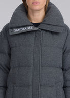Our signature Sandbanks Haven long puffer jacket transformed into statement outerwear as part of our Artisan Series. This luxury jacket is crafted from Italian artistry wool, meticulously finished with gun metal components and Lampo zips, this puffer has high thermal retention and features a Sandbanks embroidered logo badge, detachable hood and filled with recycled natural down.