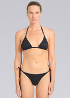 Sandbanks women's tie side bikini bottom, made from a polyamide and elastane blend for a luxurious feel with stretch. This classic bikini bottom is fully adjustable with elasticated tie sides, finished with Italian brushed gold rings with Sandbanks engraving, curating the monogram in an innovative and sophisticated design.