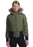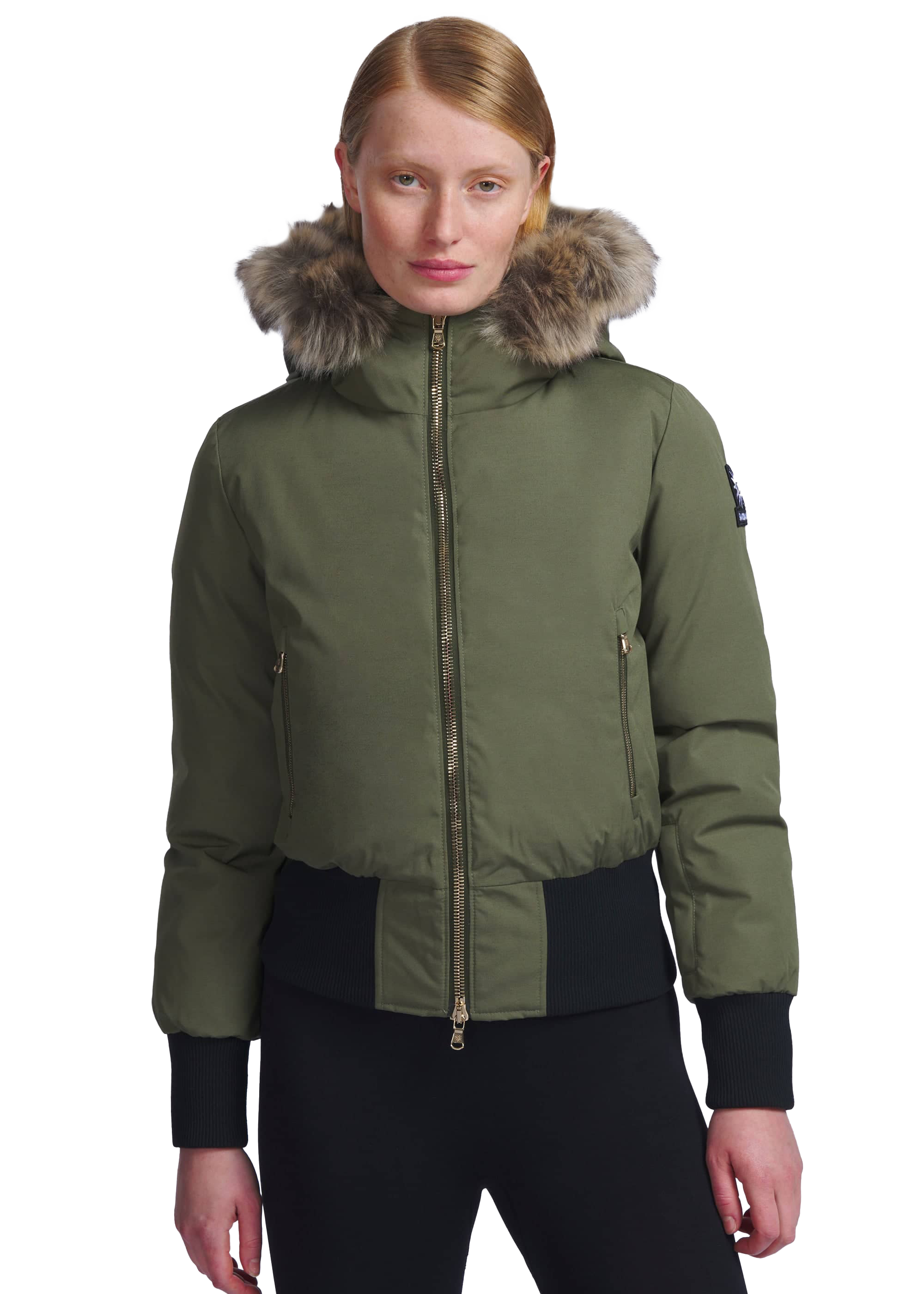 Sandbanks Bay bomber jacket is made almost entirely from recycled plastic bottles. With a khaki shell fabric, the Bay bomber has high thermal retention and features engraved light gold zips and components, alongside statement contrast Sandbanks placket embroidery.