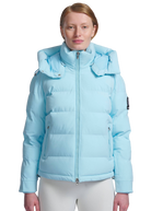 Sandbanks Belle puffer jacket for women is made almost entirely from recycled plastic bottles. With a light blue outer shell fabric, the Belle puffer has high thermal retention, and features statement Sandbanks embroidery details.